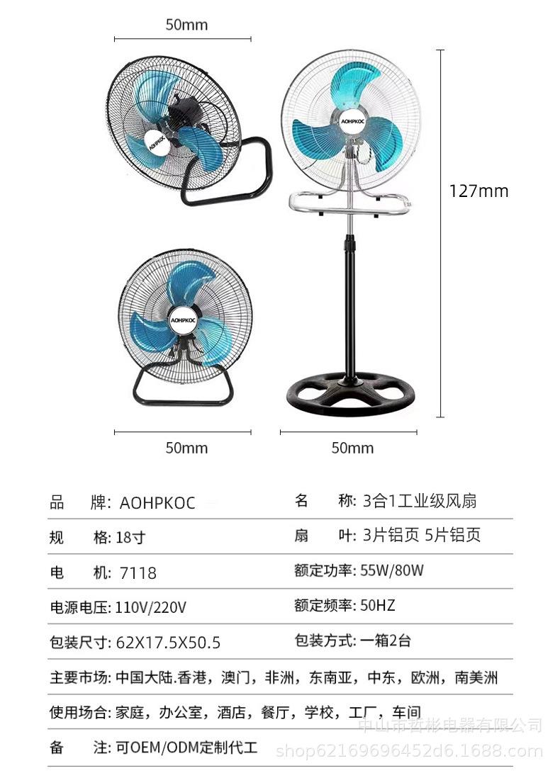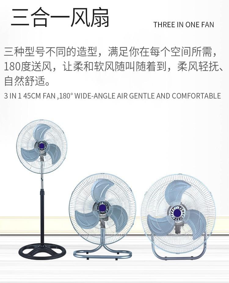 Ventilador de Piso Tres en Uno de 18 pulgadas Transfronterizo, Popular en Sudamérica, Ventilador Industrial de Pala Grande, Ventilador Eléctrico Oscilante, Ventilador Eléctrico de Comercio Exterior