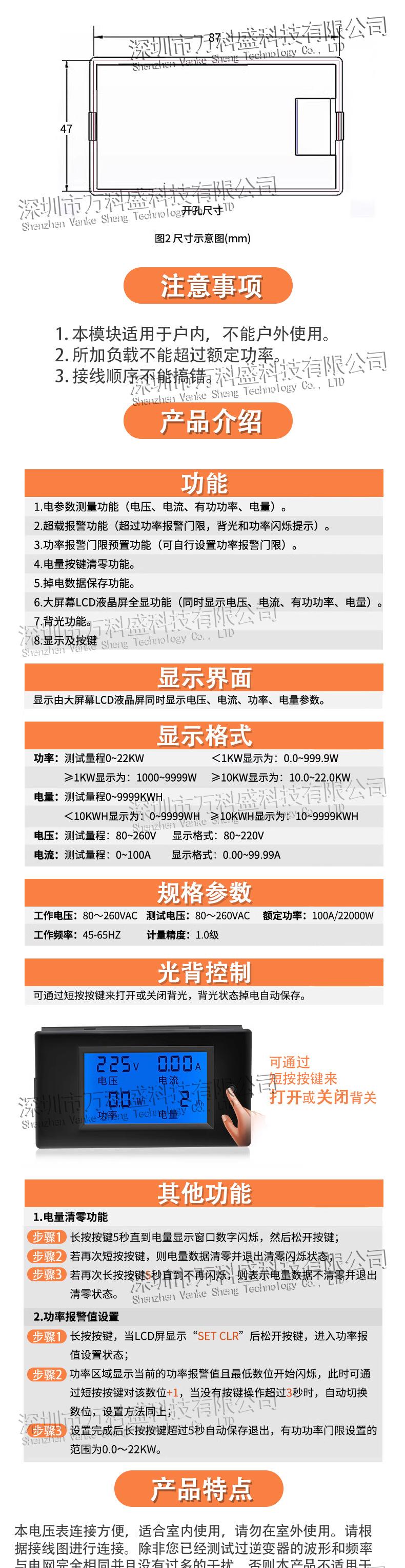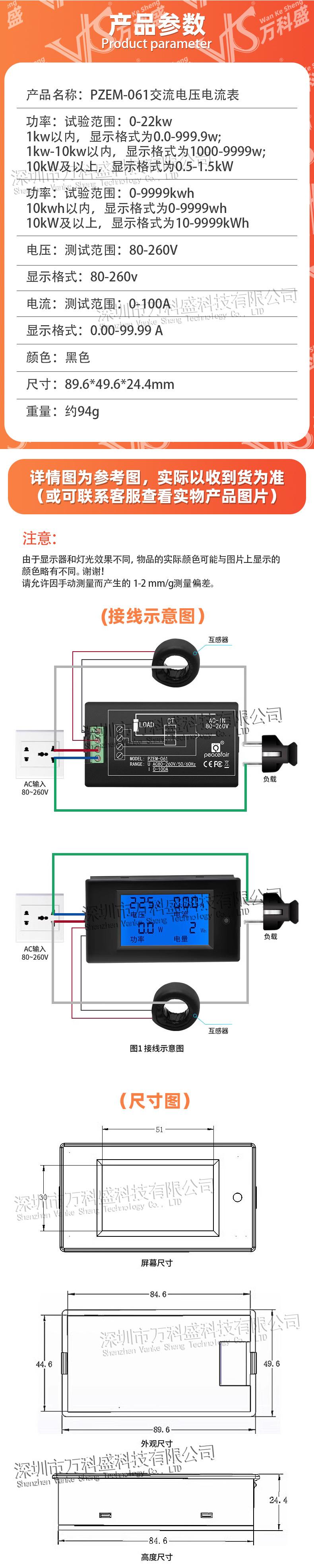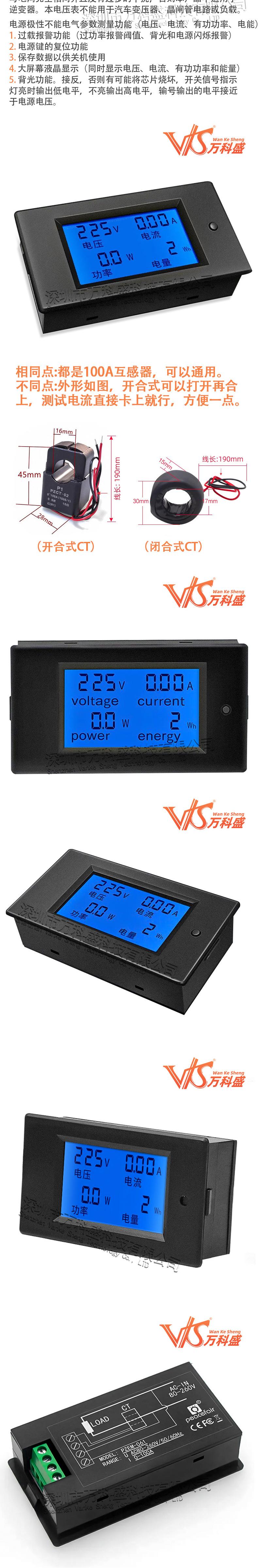 Monitor de potencia eléctrica con amperímetro de voltaje de CA, pantalla digital multifunción LCD.