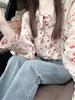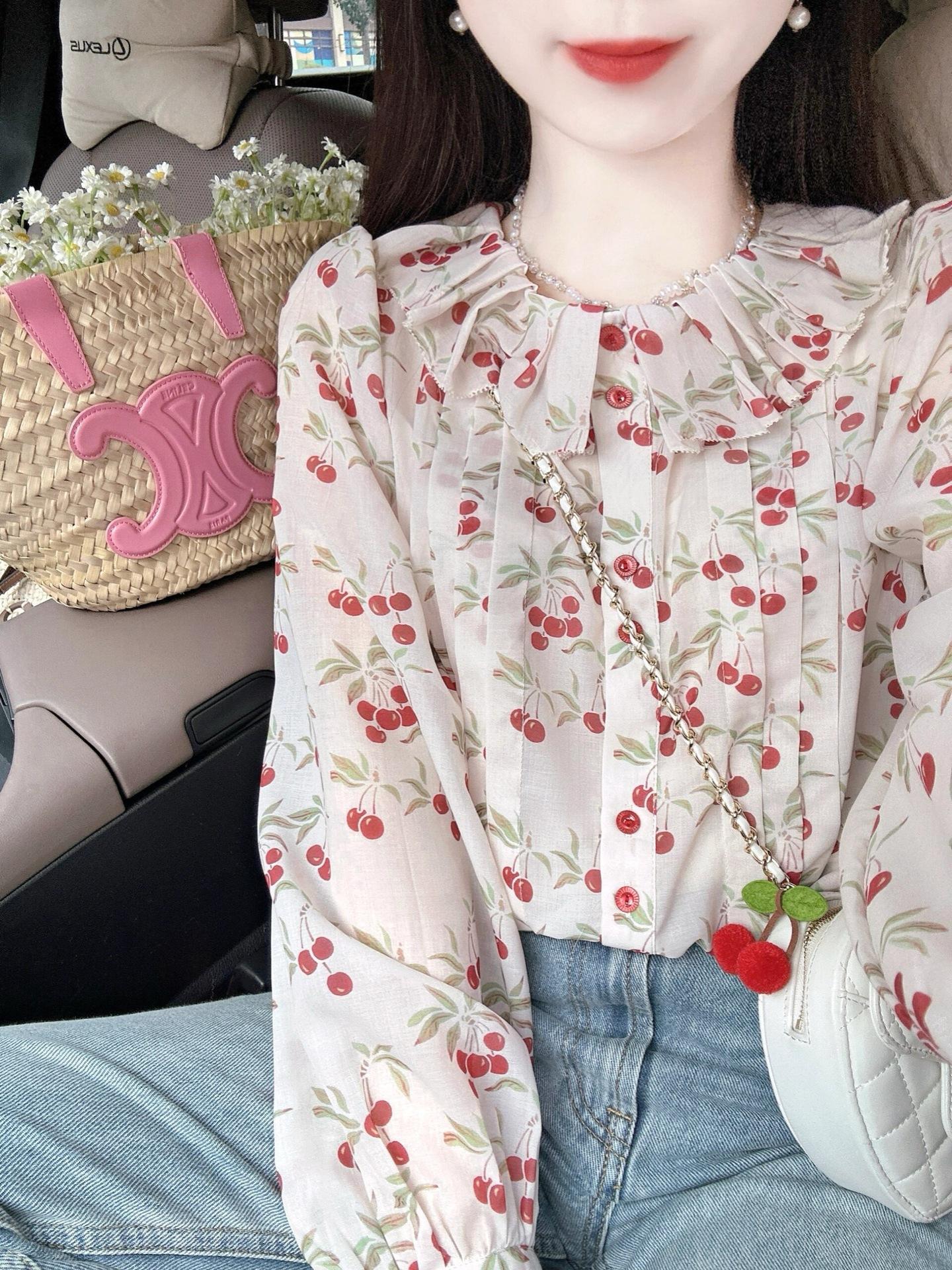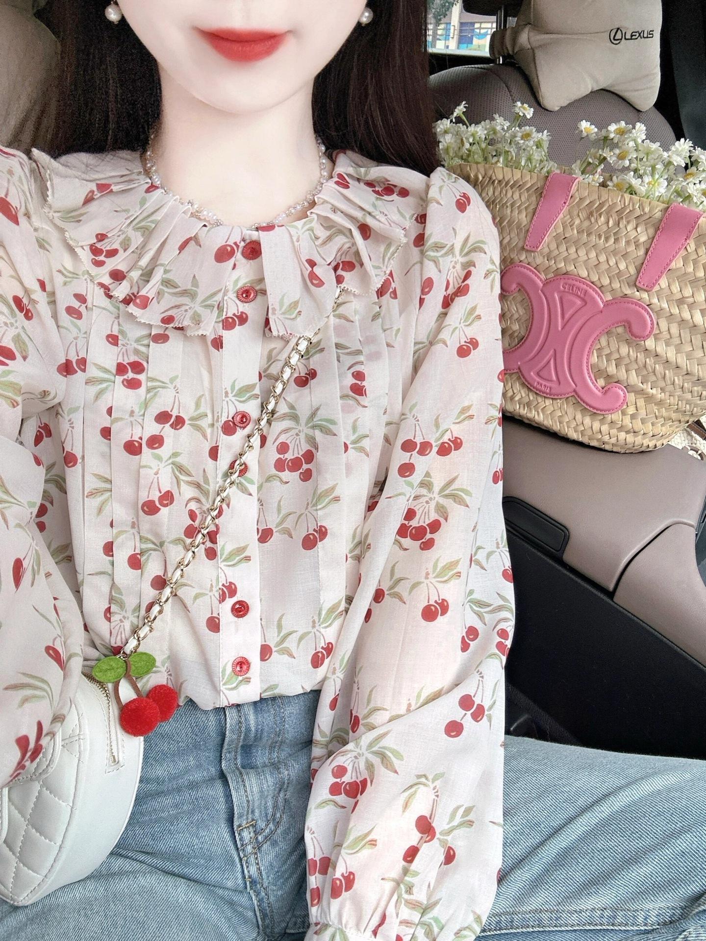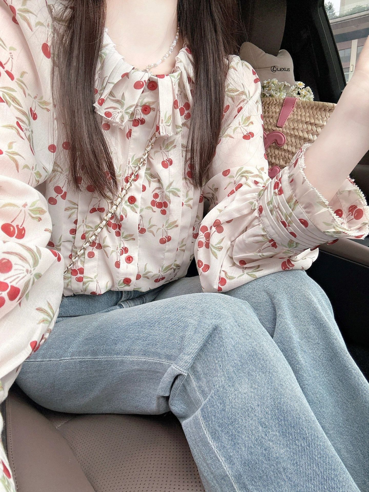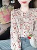 Camisa pequeña elegante de estilo occidental de otoño, estilo coreano, para damas, estilo suave, elegante, blanca, estampada, para mujer