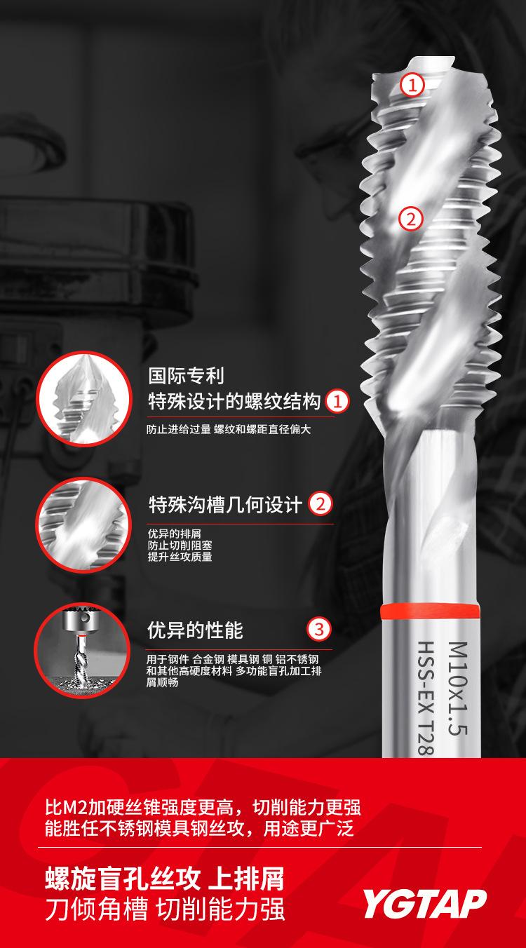 Máquina de roscado de punta espiral con contenido de cobalto YG para acero inoxidable, artefacto de roscado de macho especial para acero inoxidable m3-m16
