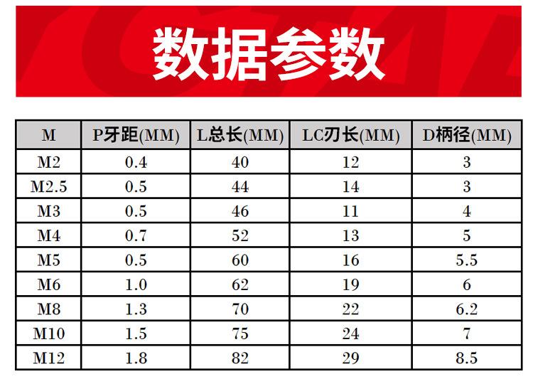 Apex M2 * 0.4, Apex M2.5 * 04, Apex M3 * 0.5, Apex M4 * 0.7, Apex M5 * 0.8, Apex M6 * 1.0, Apex M8 * 1.25, Ape...
