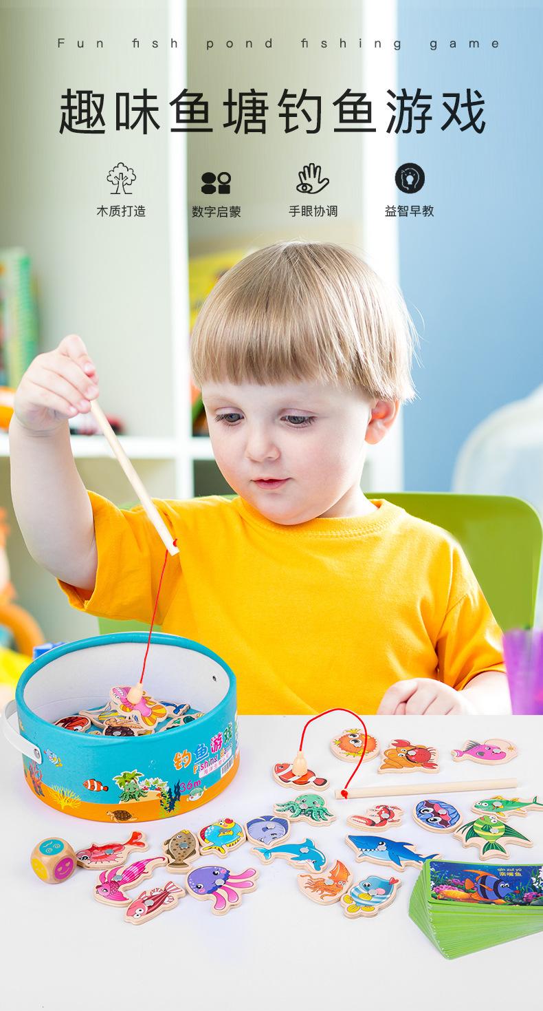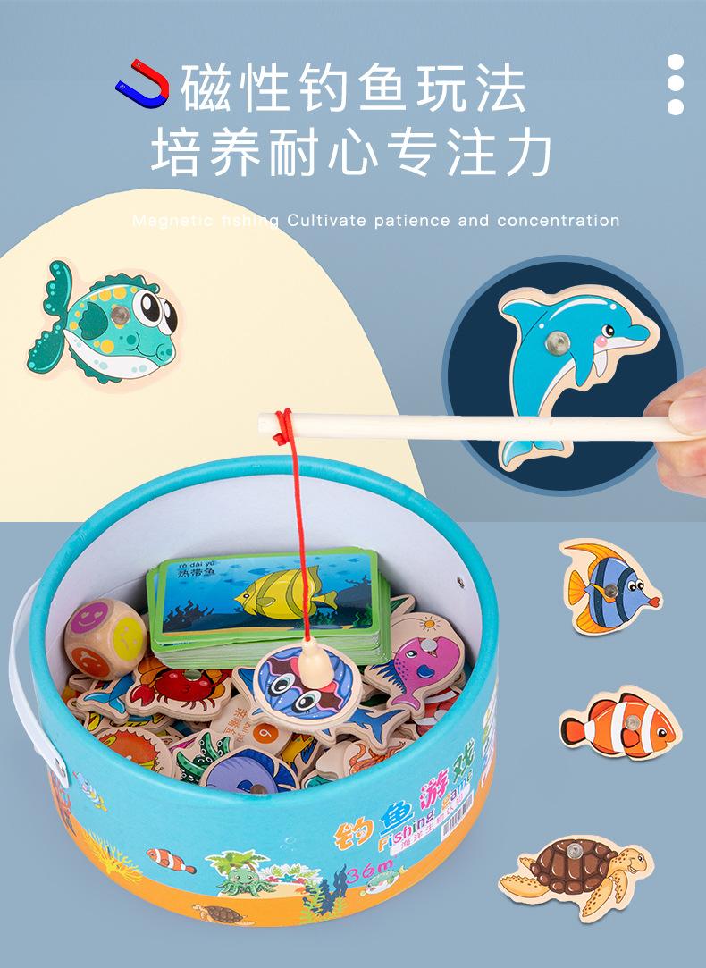 Juguetes de pesca magnéticos para niños pequeños 1-2-3 años niños y niñas Desarrollo de Educación Temprana Inteligencia traje de rompecabezas de madera