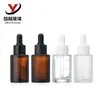 Botella de vidrio para té con gotero de 30 ml, transparente, esmerilada, con hombros planos, para emulsión y esencia, portátil, para cosméticos.