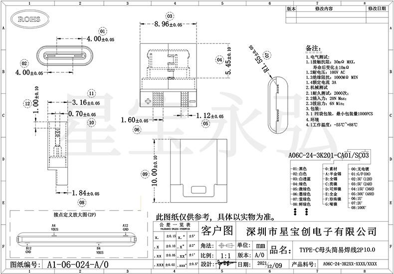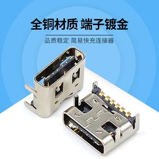 Venta directa de fábrica de conector USB tipo C hembra de 6 pines, carga rápida simple, conexión USB 3.1 tipo C