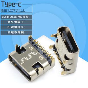 Conector USB 3.1 tipo C de 16 pines con conector hembra de tres posiciones y terminal de cobre de alta conductividad de cuatro pines.