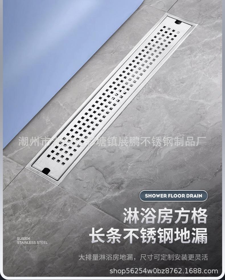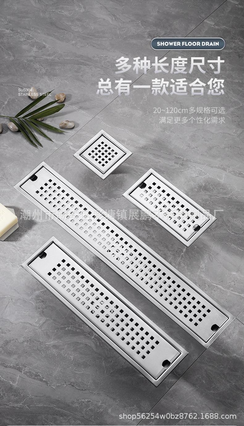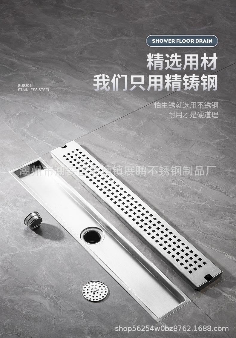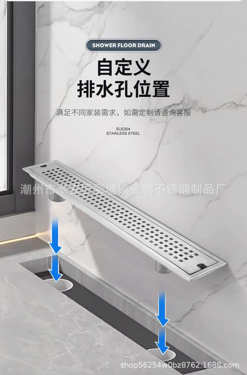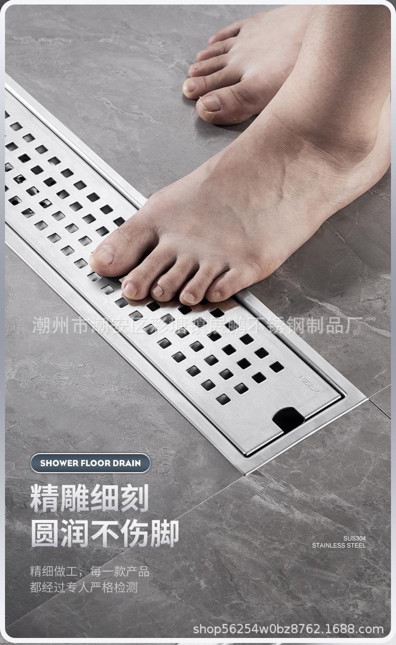 Desagüe de piso largo de acero inoxidable 304 para cuarto de ducha, ingeniería de gran desplazamiento, desagüe de piso a prueba de olores, inodoro, baño, desagüe de piso de tira larga