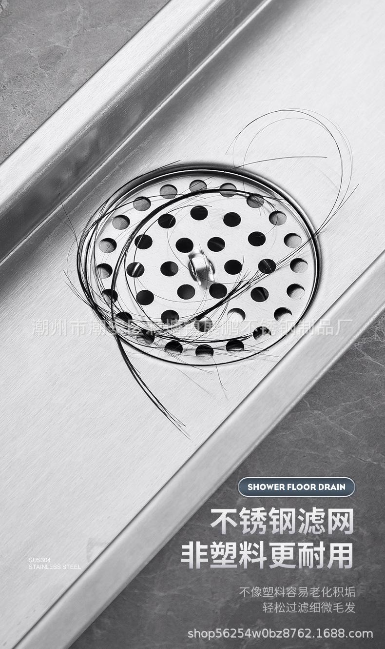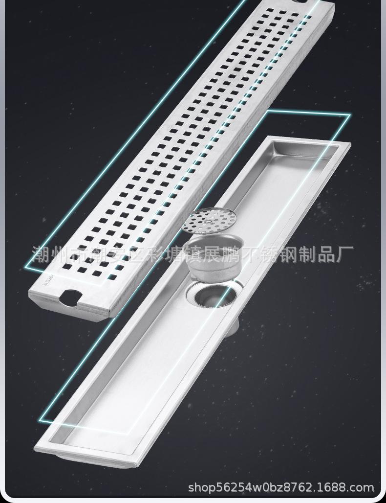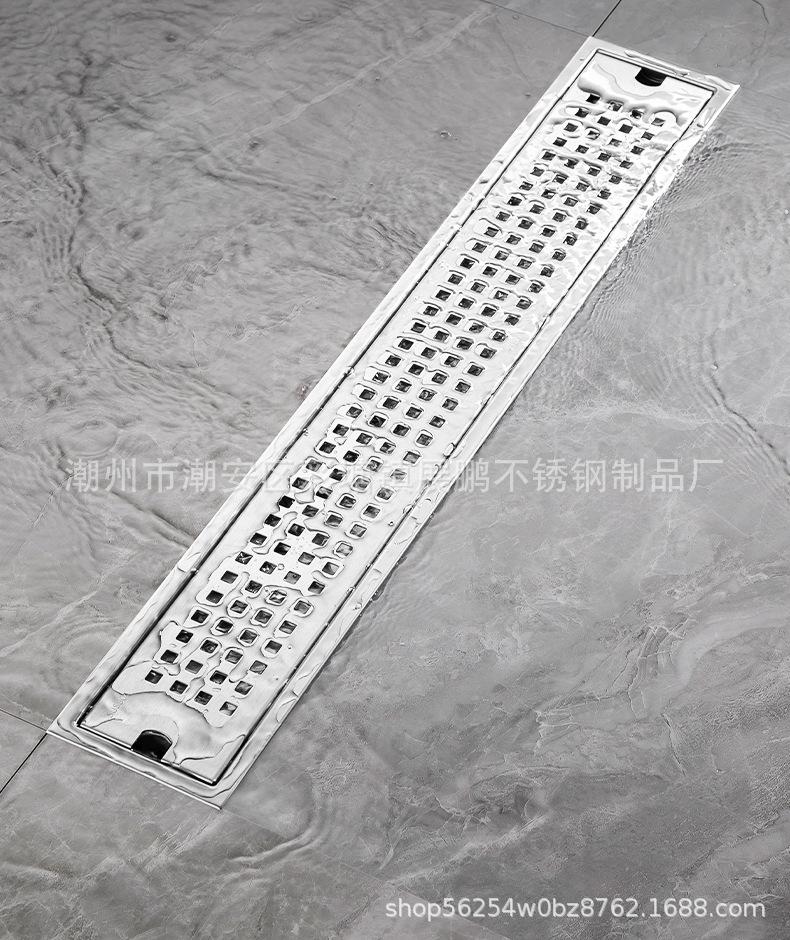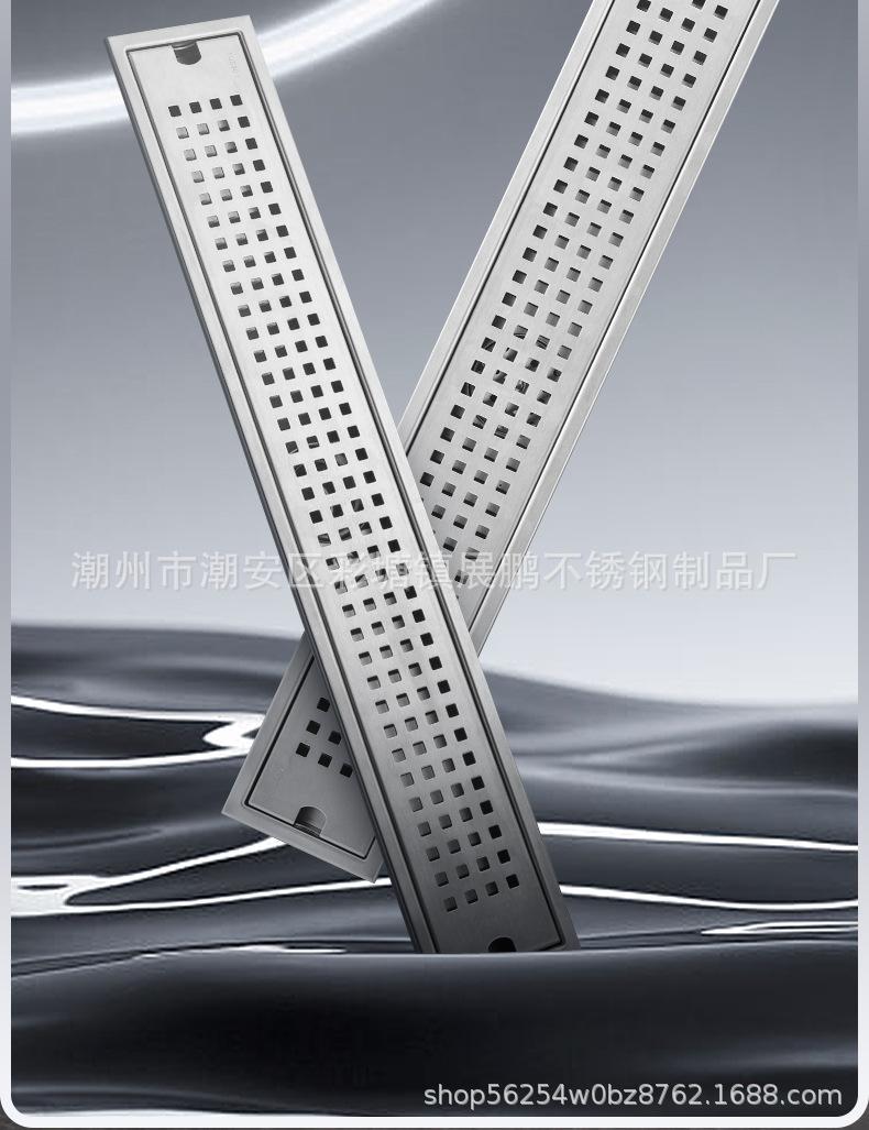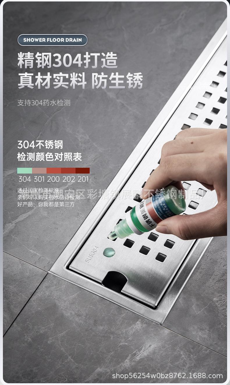 Desagüe de piso largo de acero inoxidable 304 para cuarto de ducha, ingeniería de gran desplazamiento, desagüe de piso a prueba de olores, inodoro, baño, desagüe de piso de tira larga