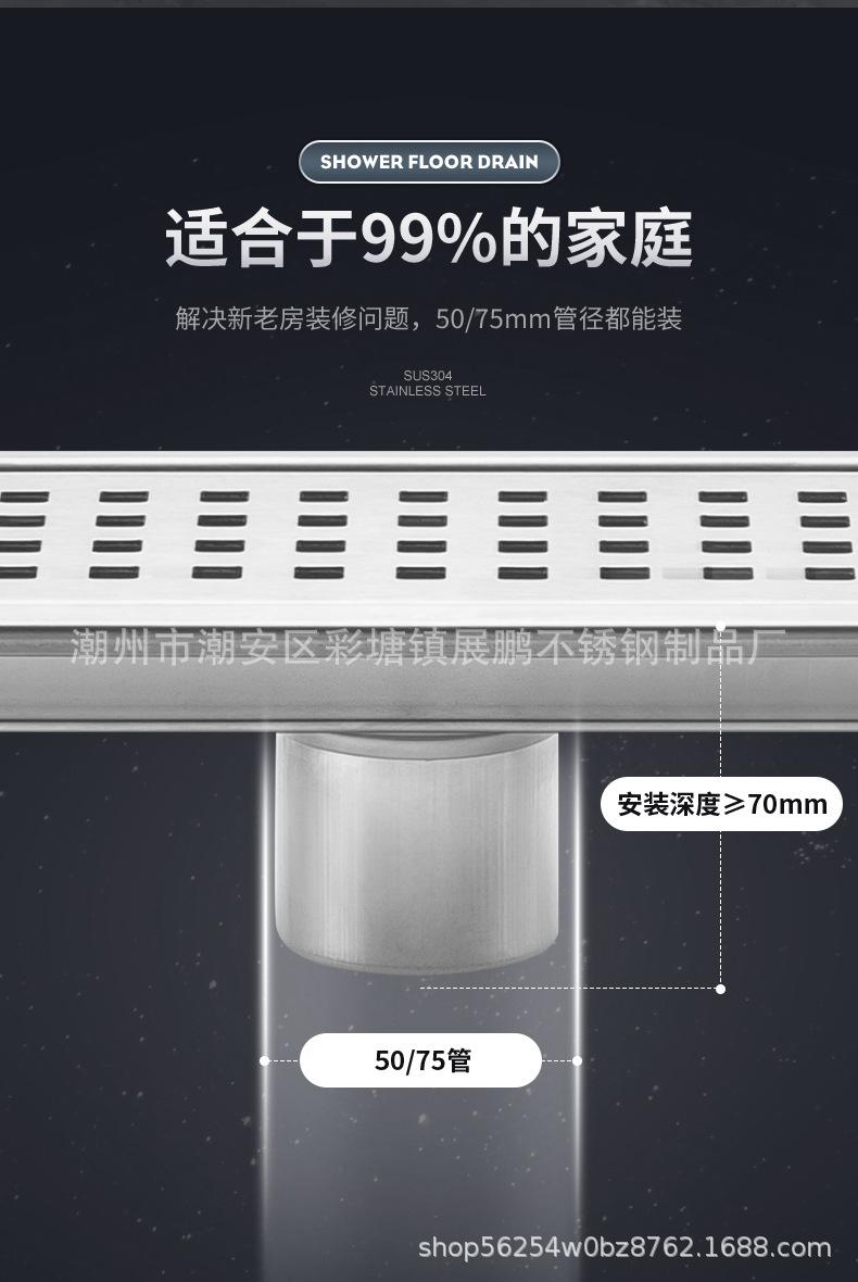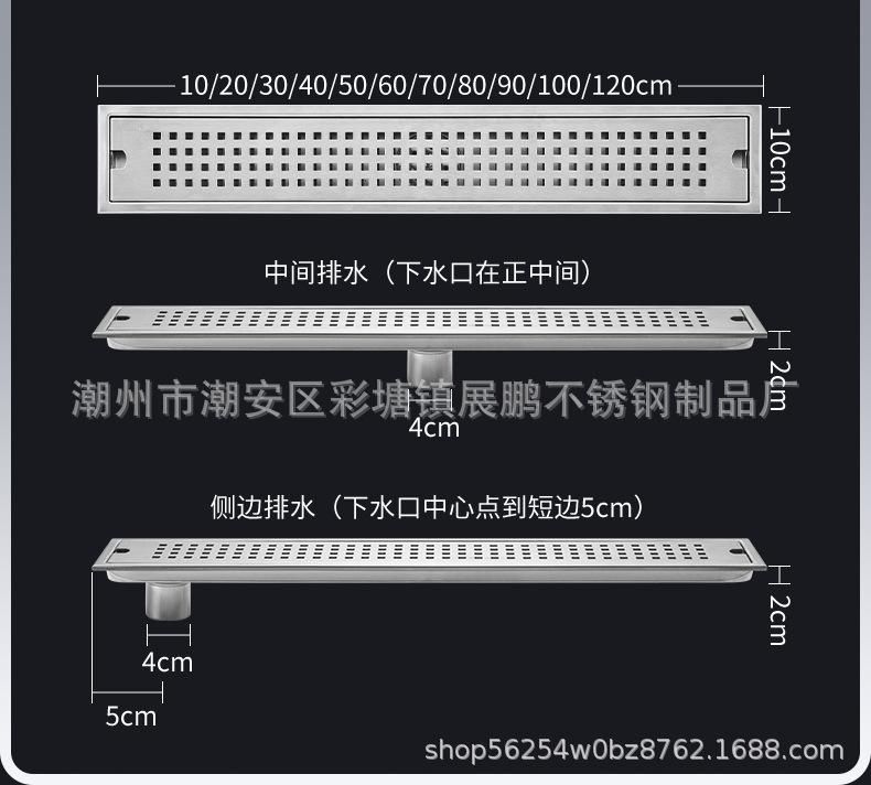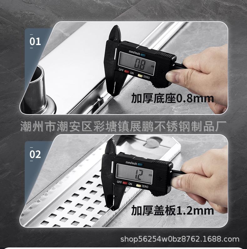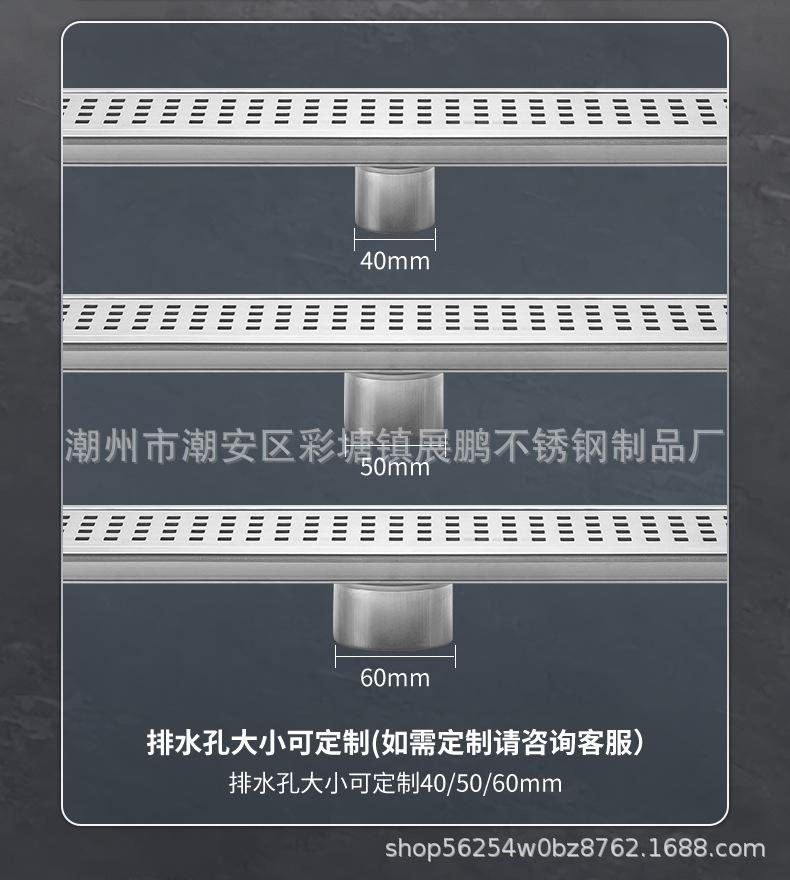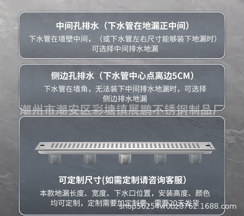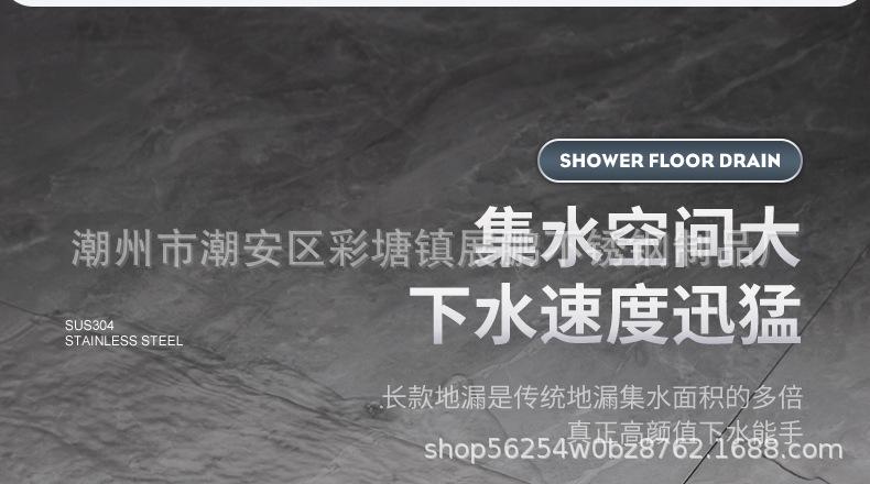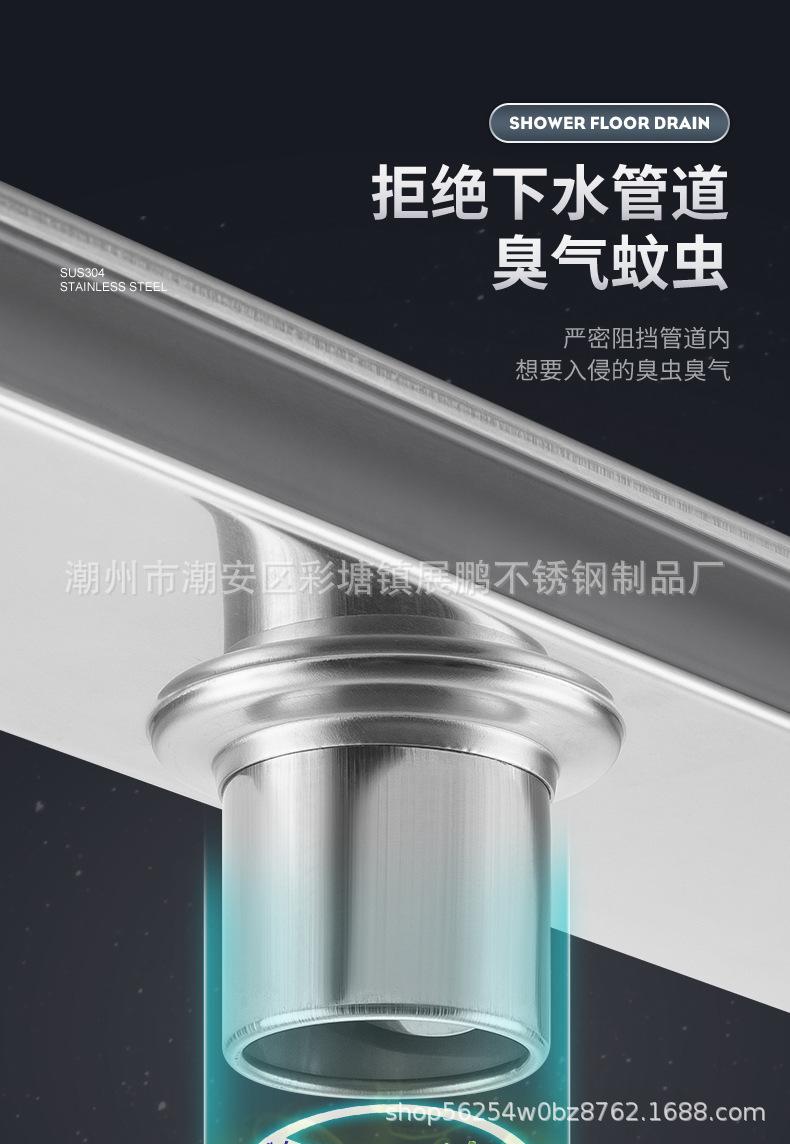 Desagüe de piso largo de acero inoxidable 304 para cuarto de ducha, ingeniería de gran desplazamiento, desagüe de piso a prueba de olores, inodoro, baño, desagüe de piso de tira larga