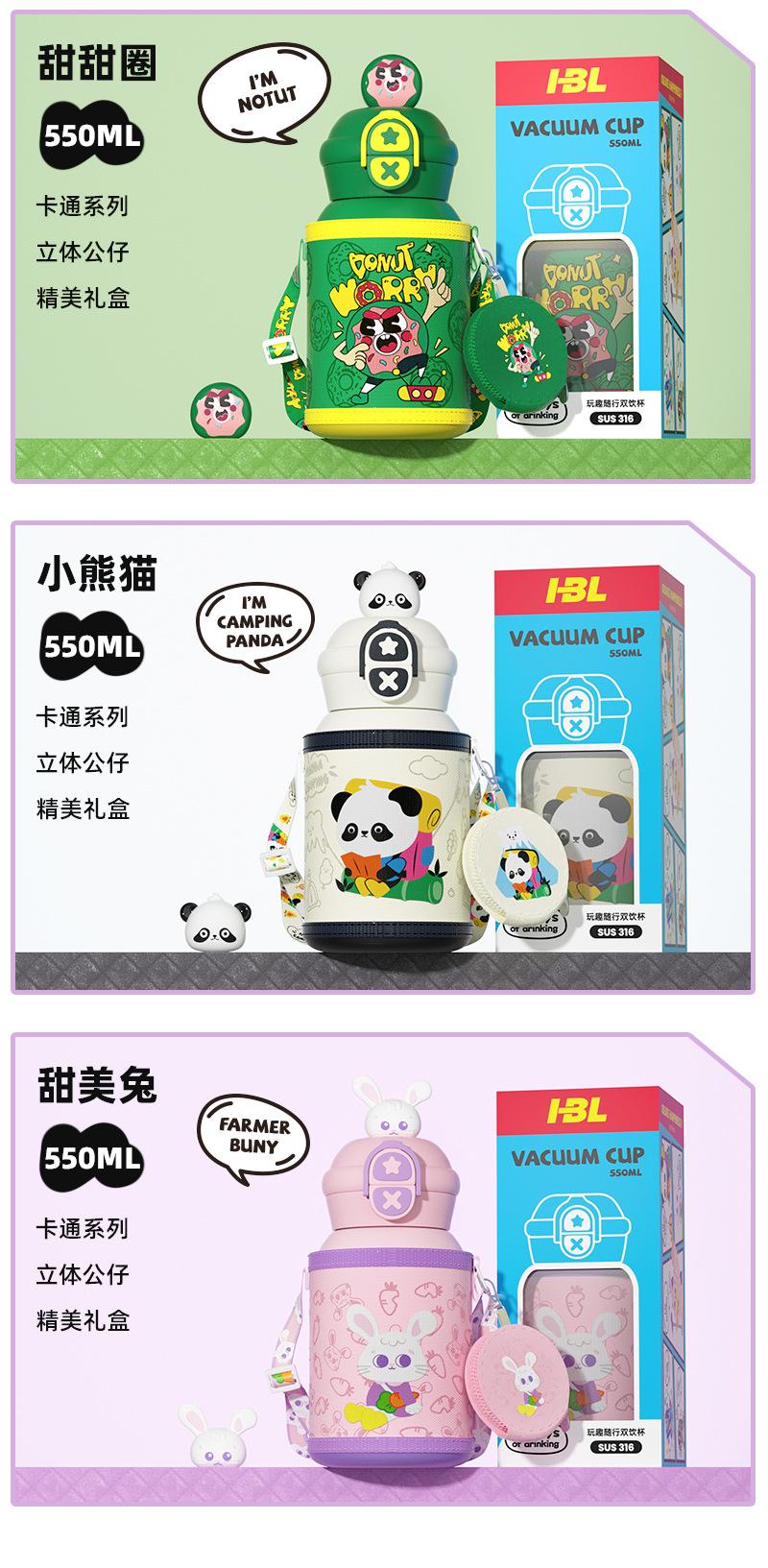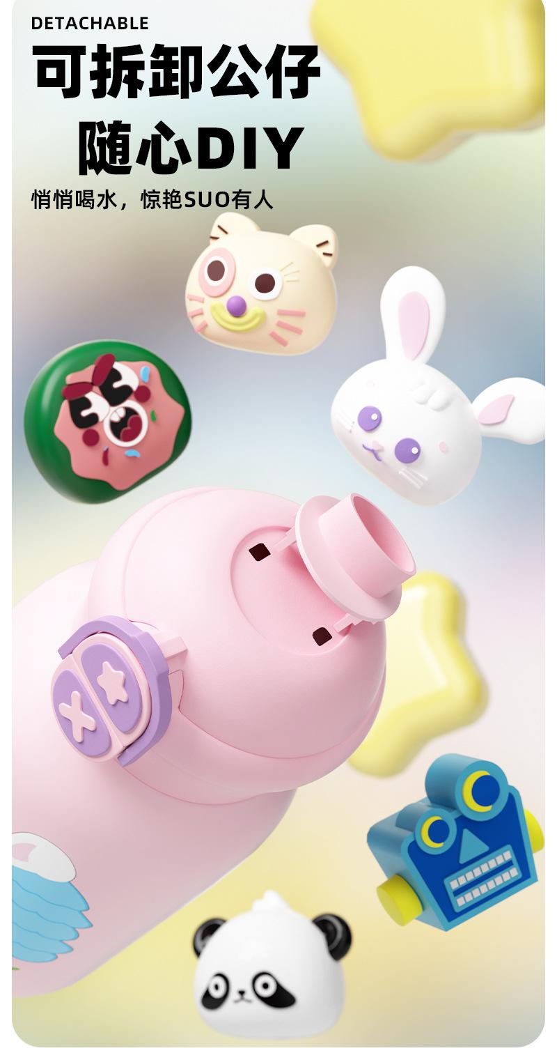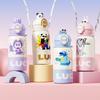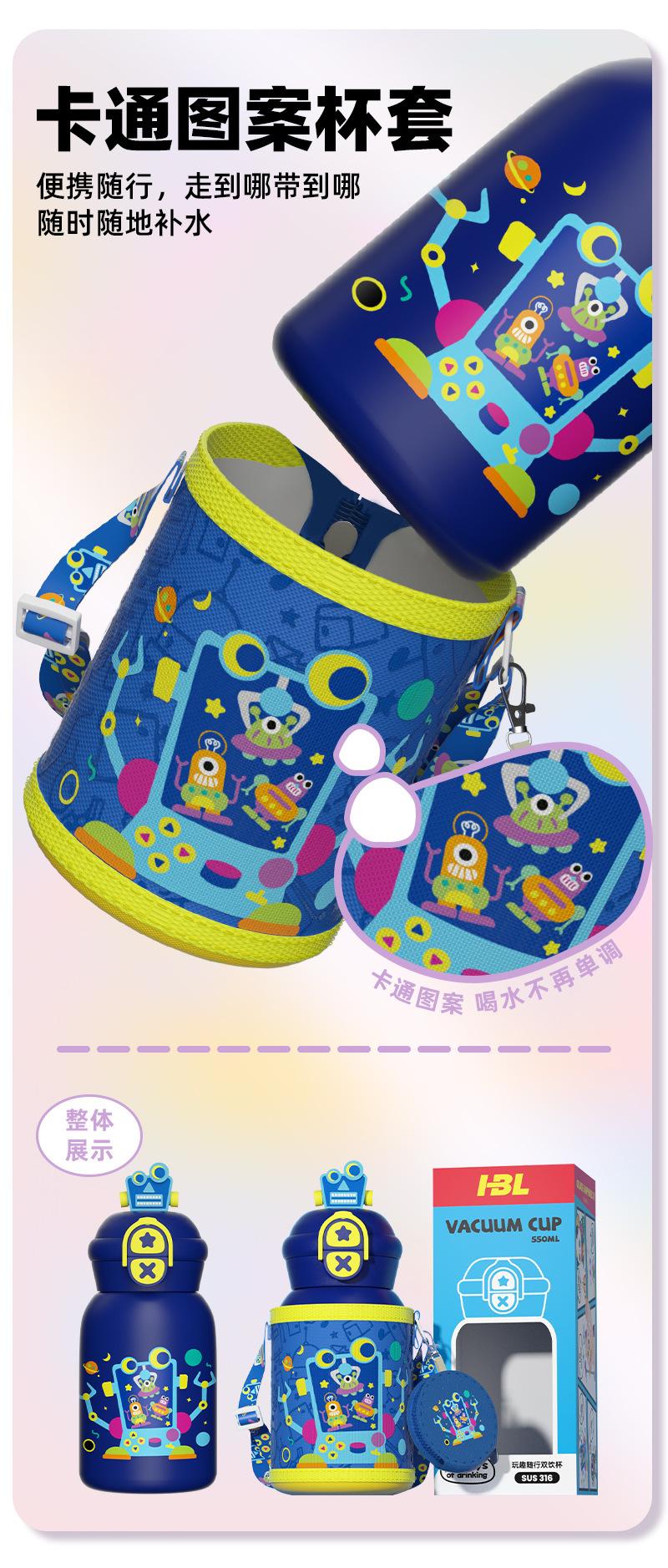 Termo para niños con pajita, botella de agua con correa doble, diseño de dibujos animados de alto valor para estudiantes
