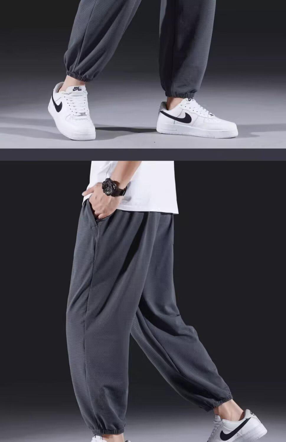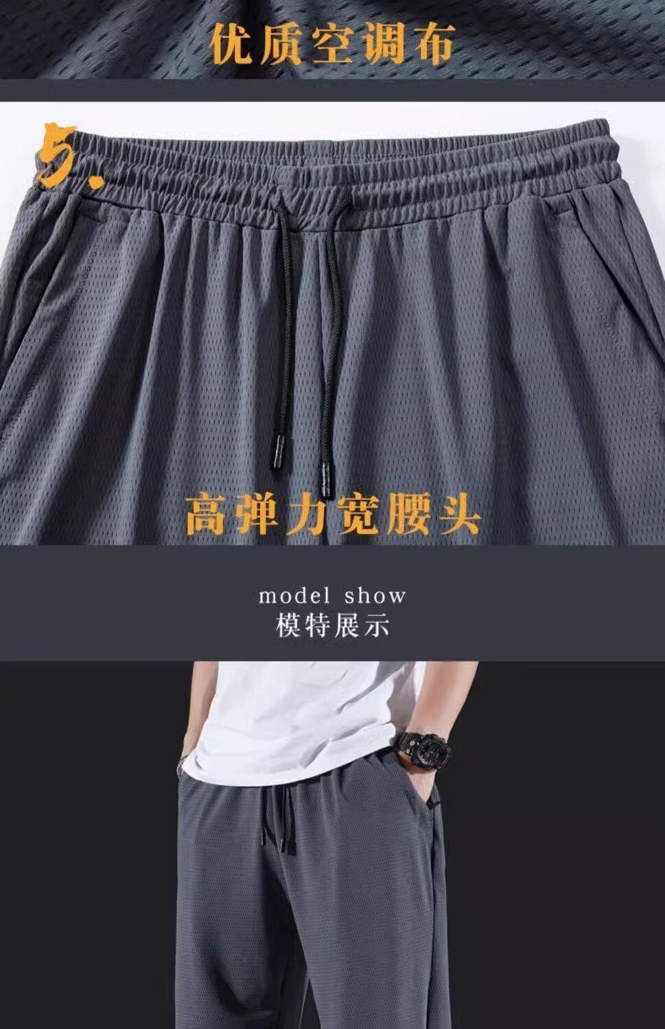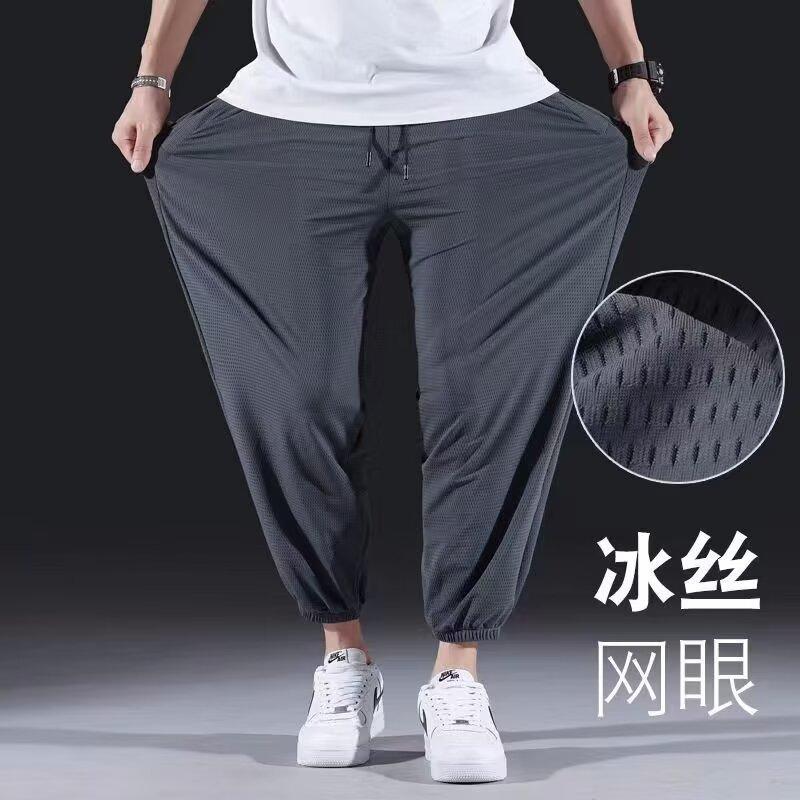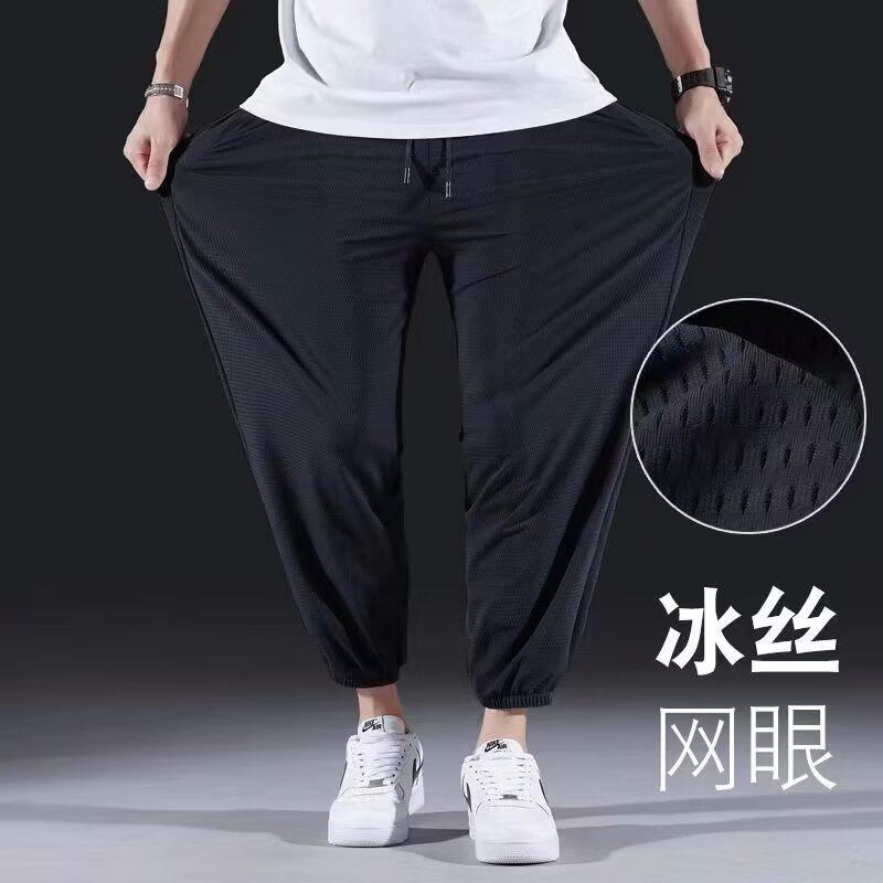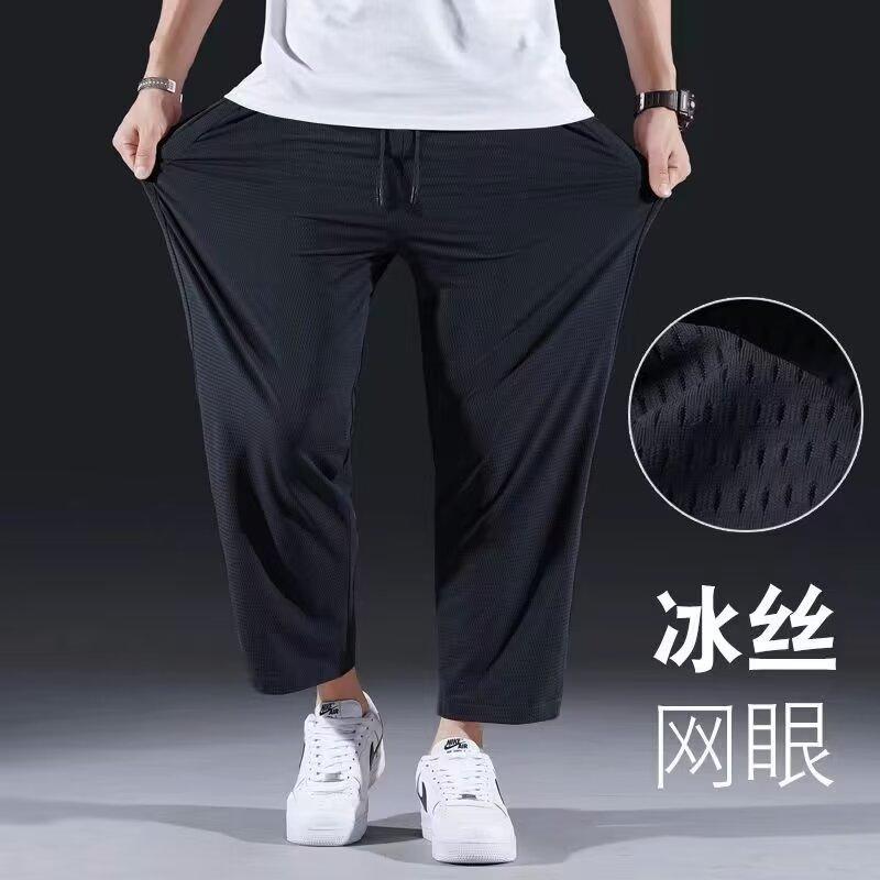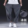Pantalones deportivos de verano para hombre, de malla fina de seda helada, de secado rápido, hasta el tobillo, elásticos, informales, de talla grande