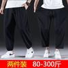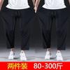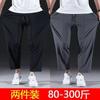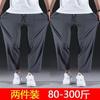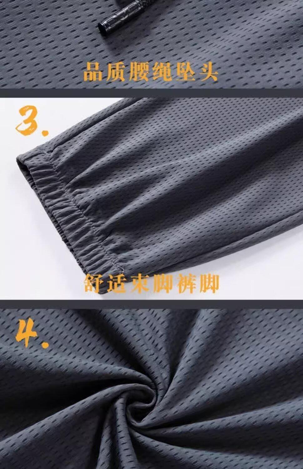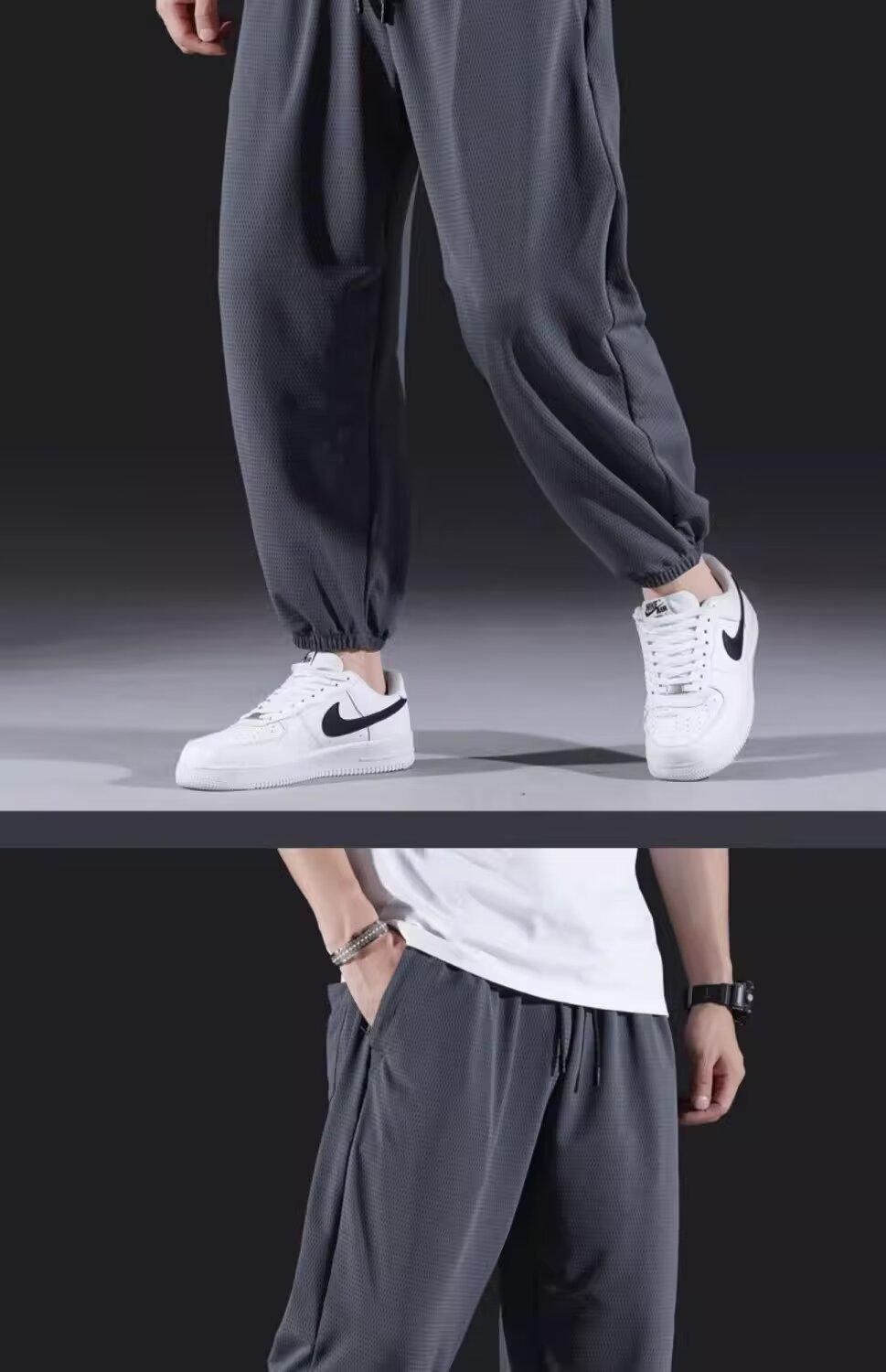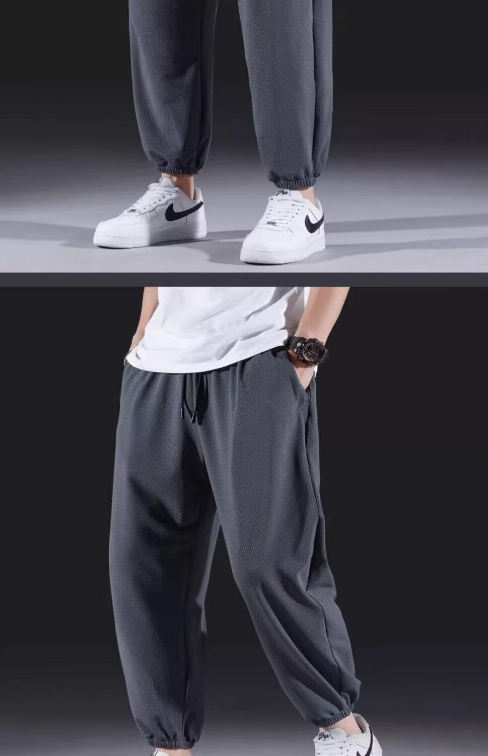 Pantalones deportivos de verano para hombre, de malla fina de seda helada, de secado rápido, hasta el tobillo, elásticos, informales, de talla grande