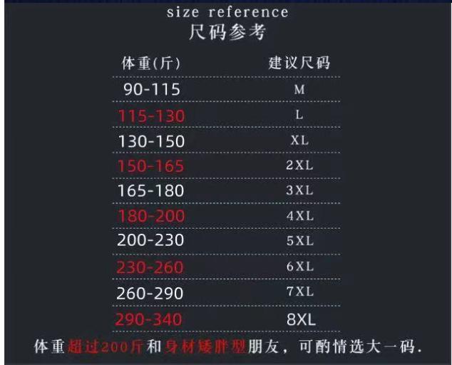 M, L, XL, 2XL, 3XL, 4XL, 5XL, 6XL, 7XL, 8XL