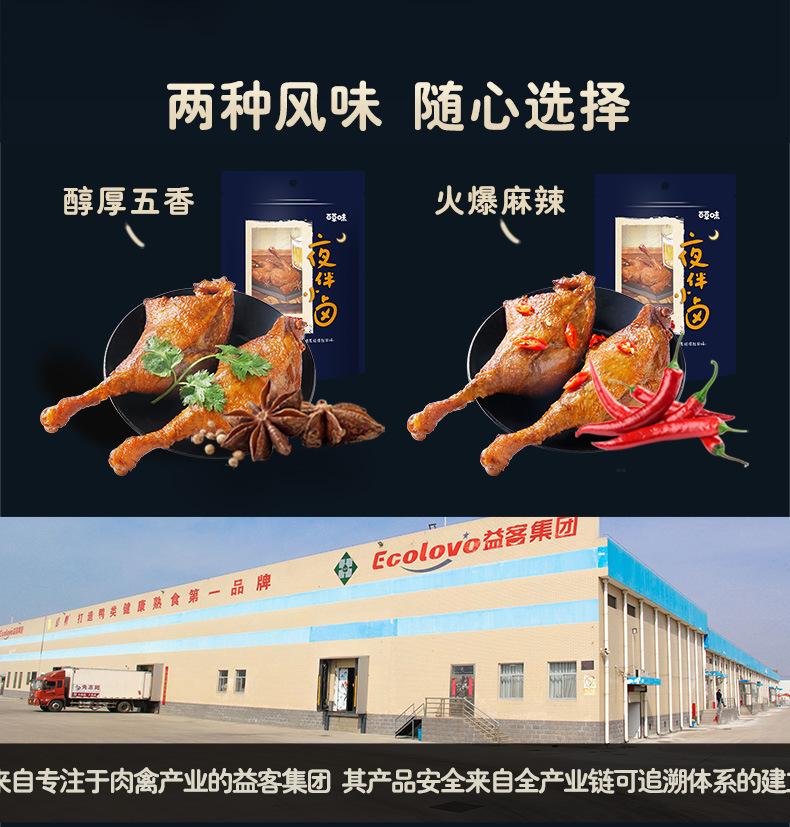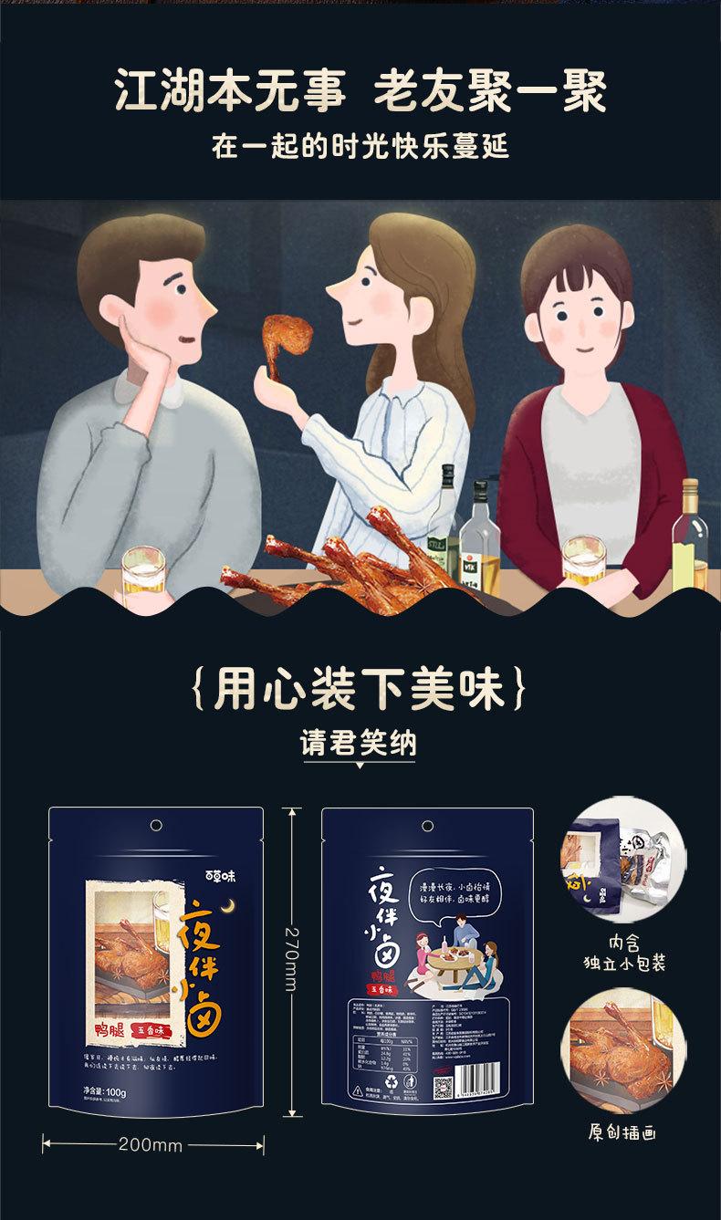 Piernas de Pato Sabor Baicao 100g Picante Estofado Snacks de Pato Snacks Cocido Listo para Comer Carne Tamaño de Caja 50 Bolsas