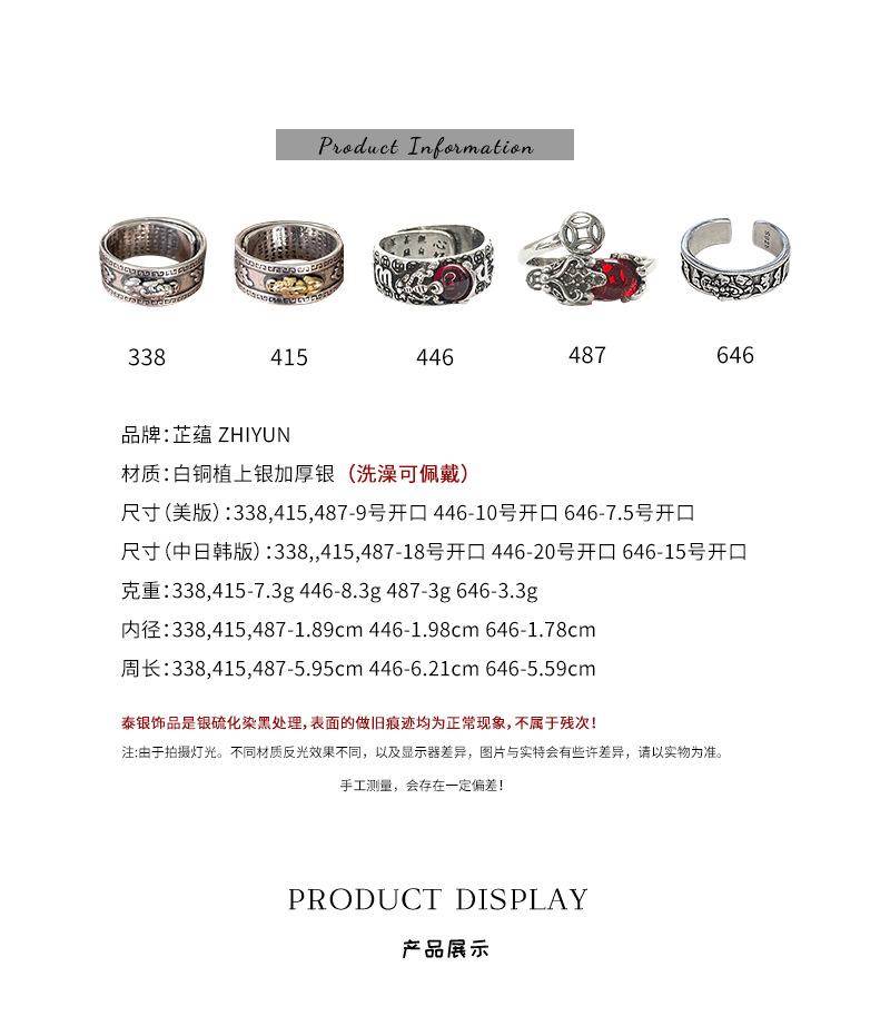 ZHIYUN retro tailandés plata valiente nueva joyería china personalidad para hombres apertura transfronteriza ajustable anillo de plata 925 para mujeres
