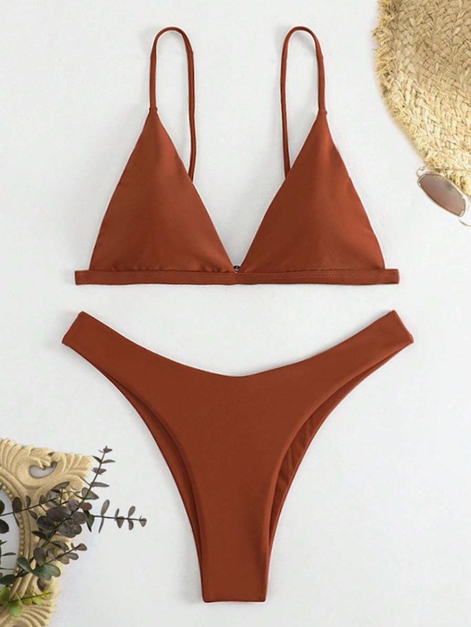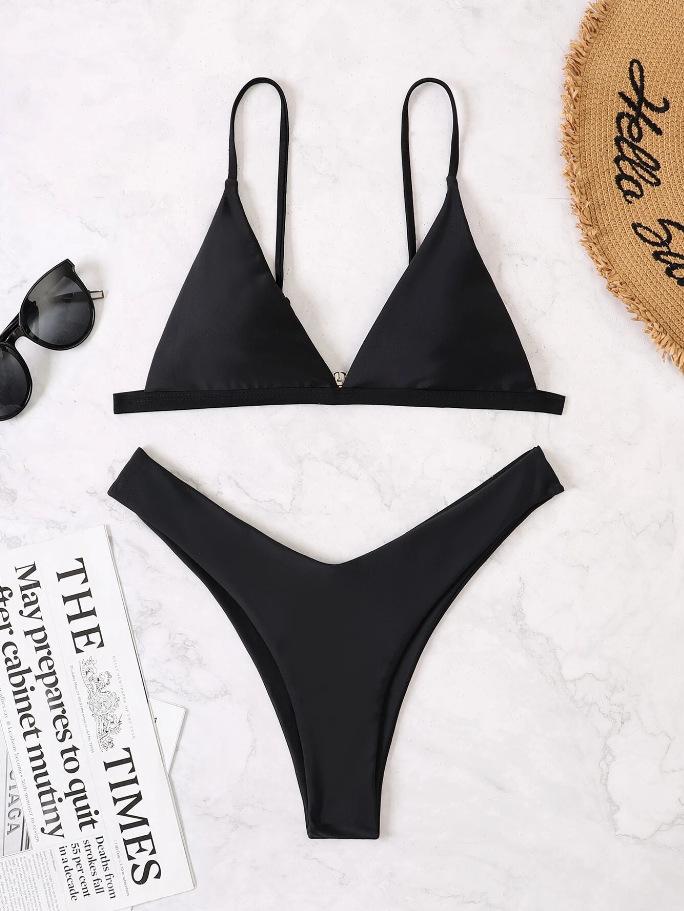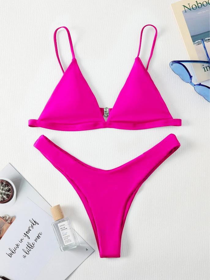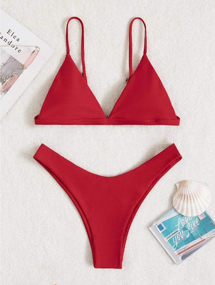 Bikini europeo y americano de color sólido dividido de tres puntos sexy transfronterizo Amazon bikini para vacaciones de playa femenino