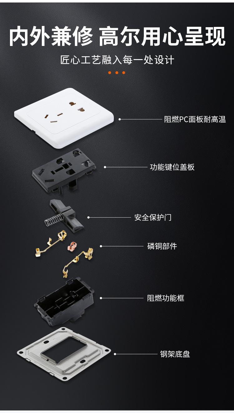 Venta al por mayor de fábrica en stock 86 ingeniería de cobre puro elegante interruptor blanco panel de enchufe de cinco orificios dos o tres enchufes enchufe de pared