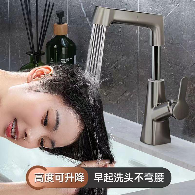 Grifo de lavabo de cobre para baño, grifo de elevación de agua para lavabo extraíble multifunción de agua caliente y fría
