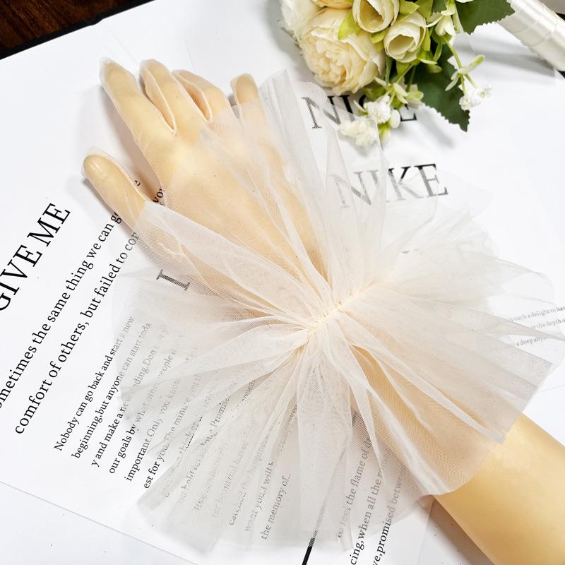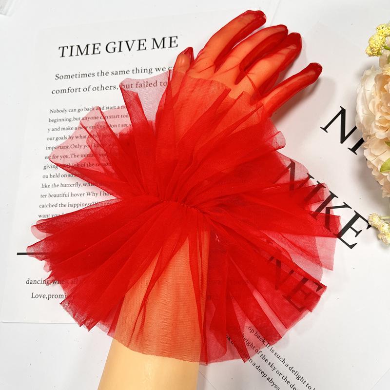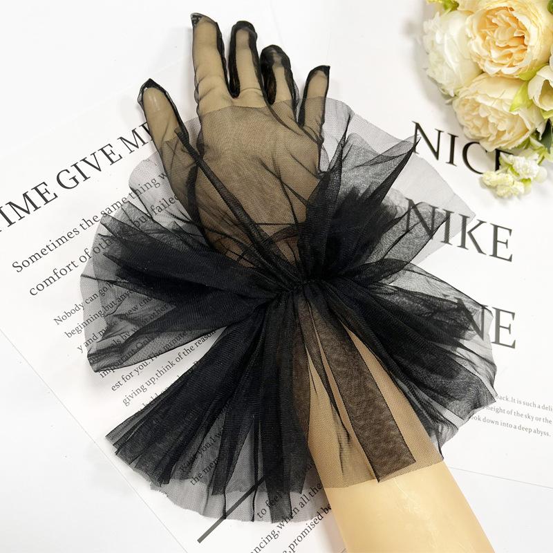 Guantes de Boda Cortos Arrugados Hada Delgados Transparentes Bolsa Dedo Negro Blanco Vestido de Noche Sexy Anti Europeo y Americano