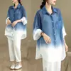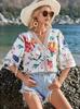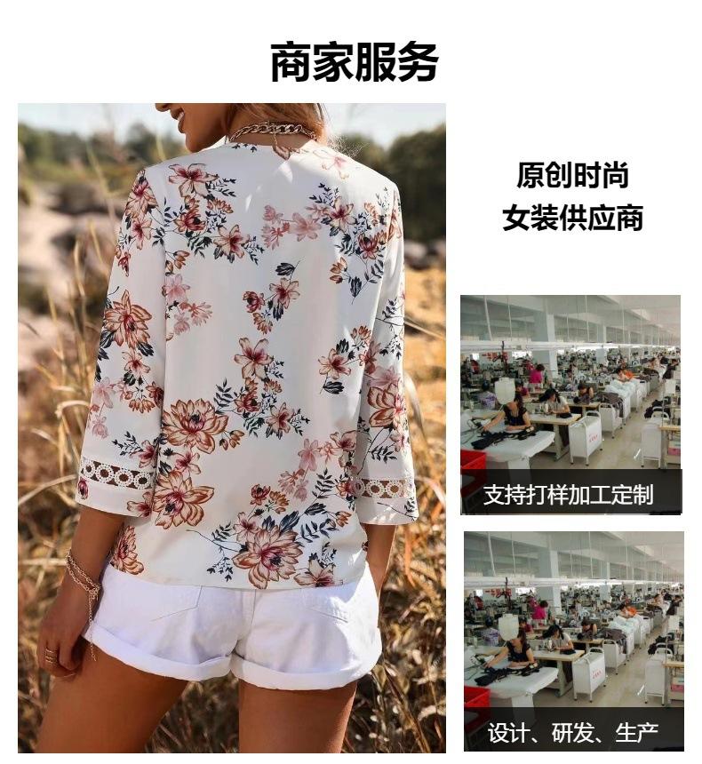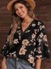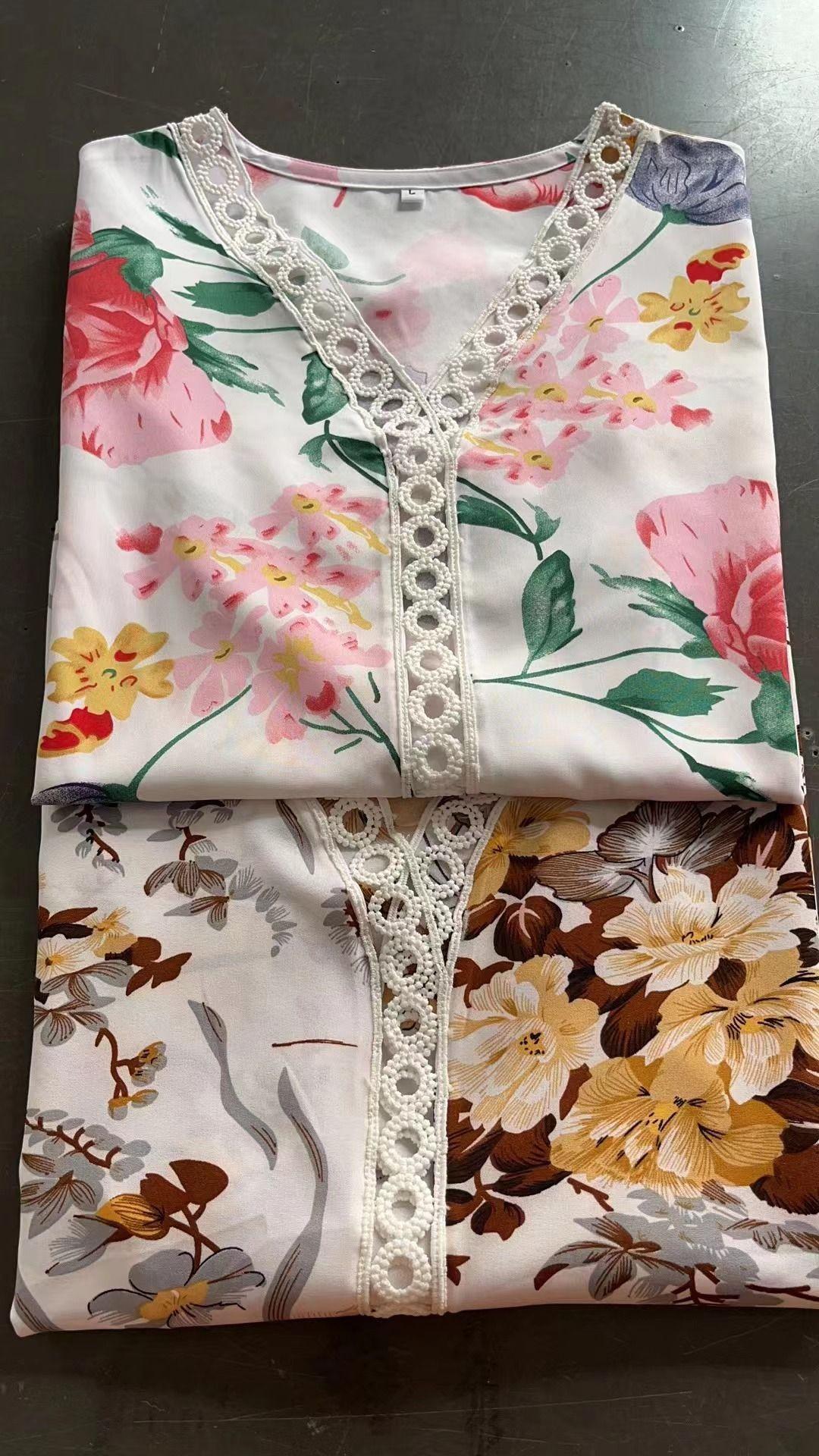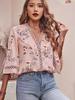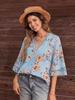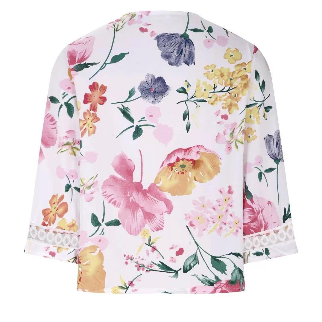 2025 Exportación Transfronteriza Europea y Americana Nuevo Estilo Urbano Cuello en V Trompeta Manga Tres Cuartos Top Holgado Estampado Camisa de Encaje para Mujer