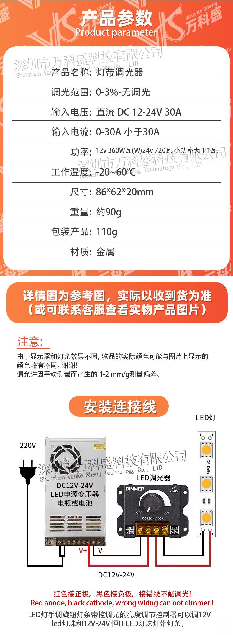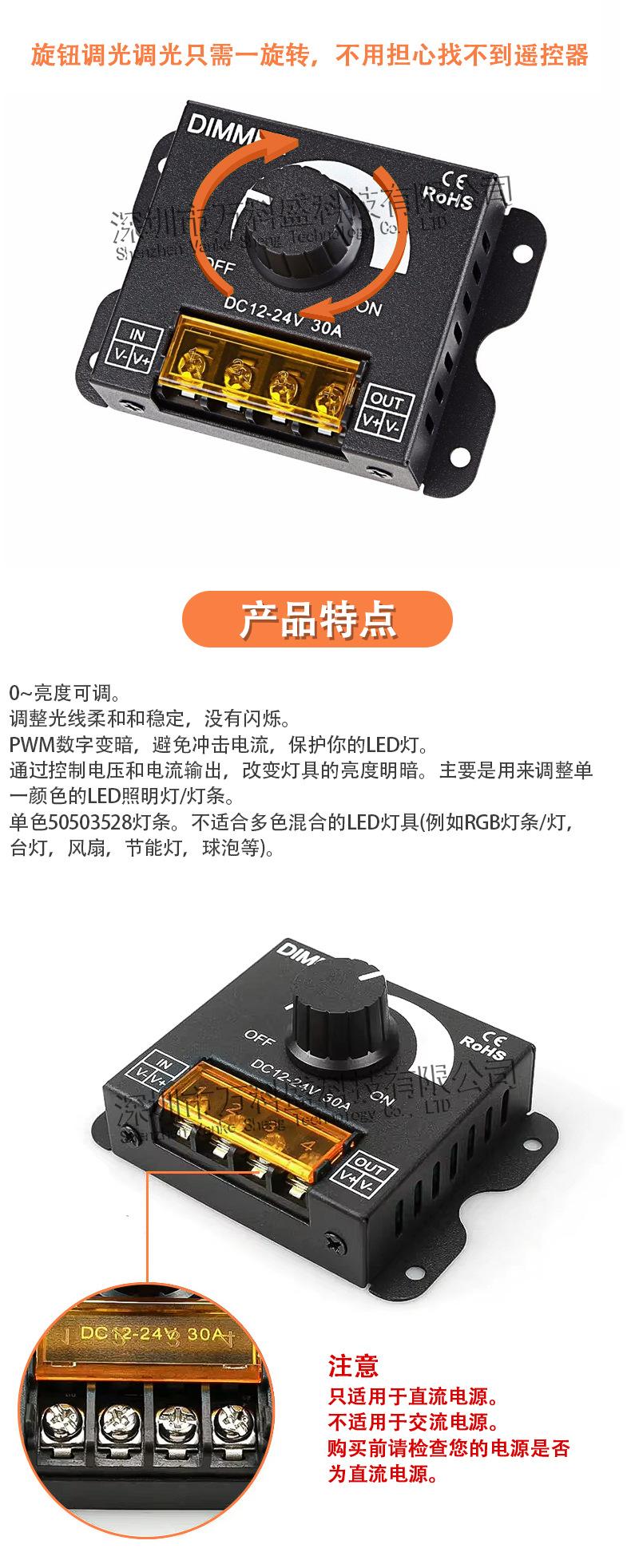 Barra de luz LED suave y dura con interruptor de perilla reguladora de brillo con atenuador 12V/24V30A