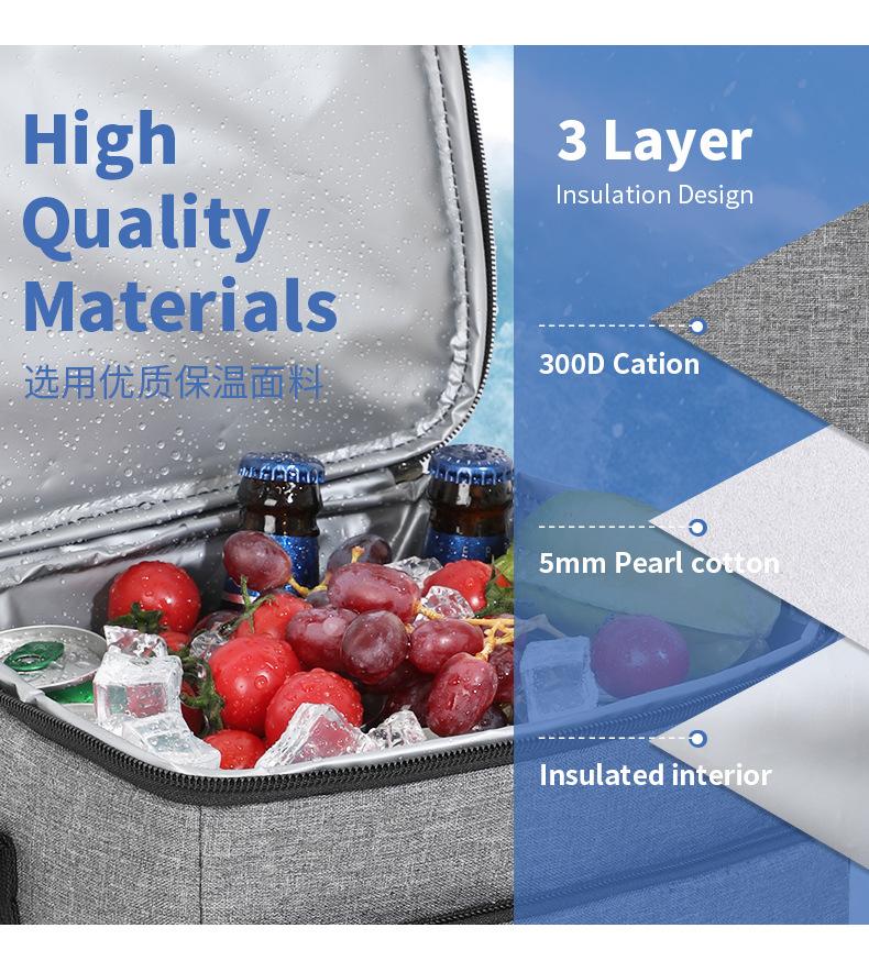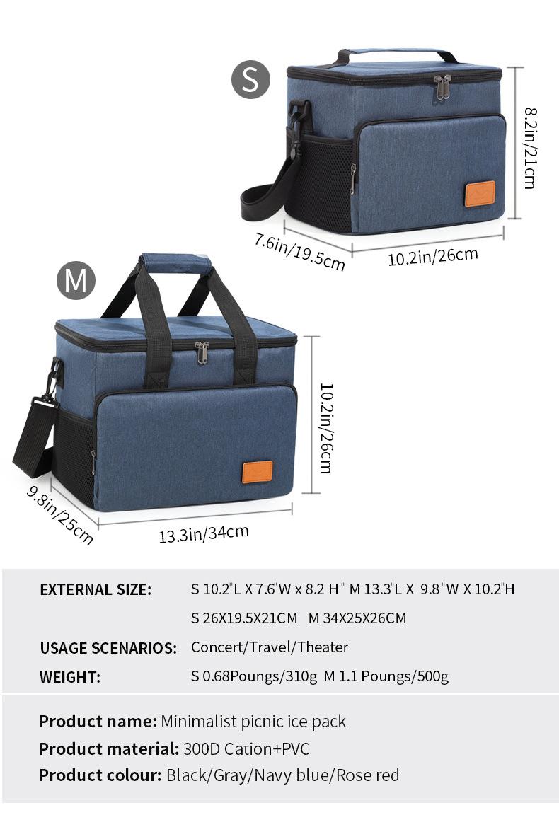 Bolsa de almuerzo con hielo de gran capacidad para explosiones transfronterizas de Amazon, caja de incubación cuadrada, bolsa aislante exterior de aluminio grueso