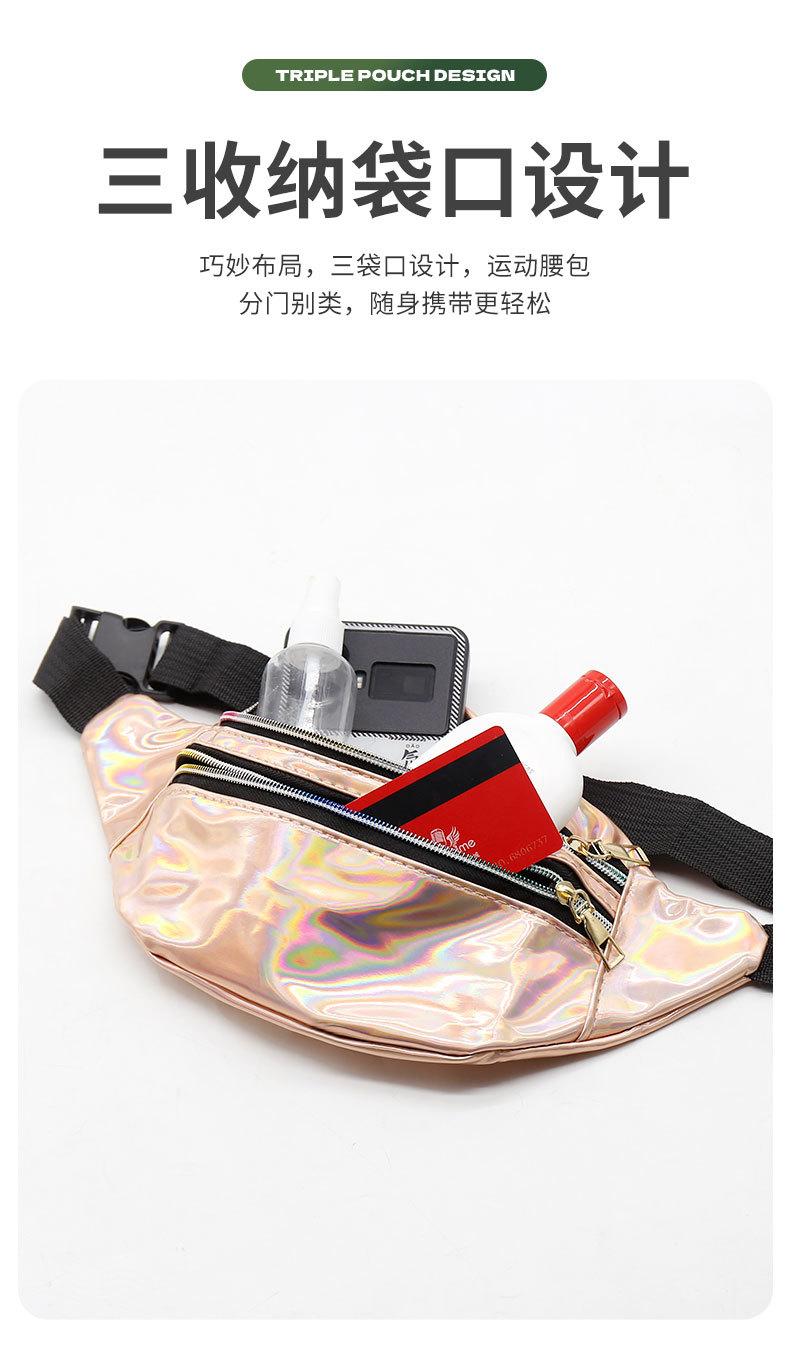 Riñonera deportiva para correr al aire libre, estilo transfronterizo, con láser colorido, resistente al agua, para teléfono móvil, para deportes al aire libre y fitness.
