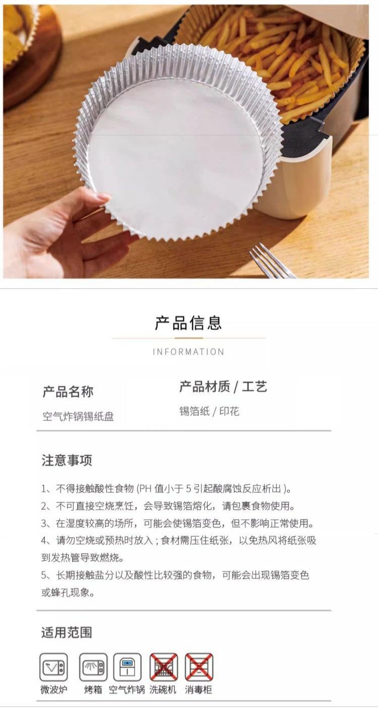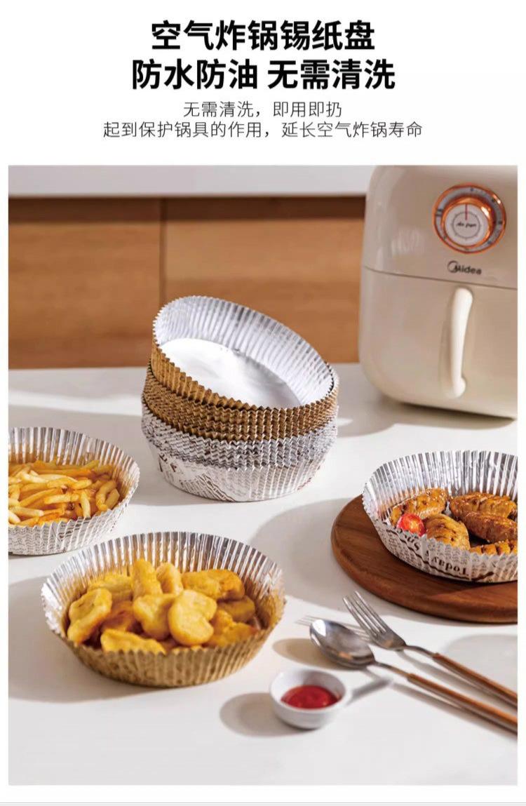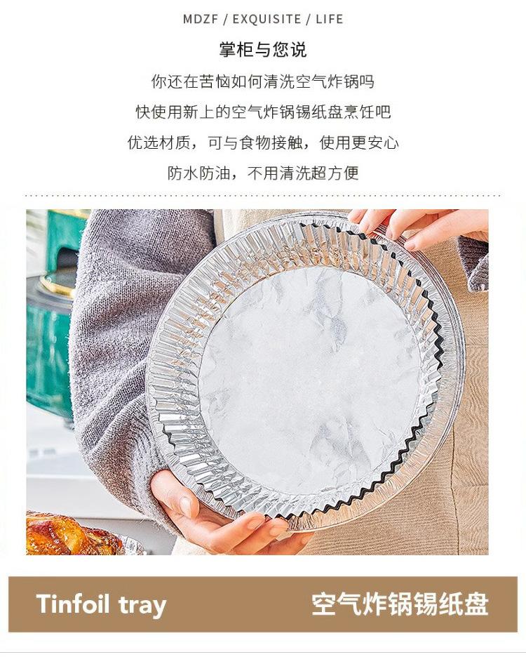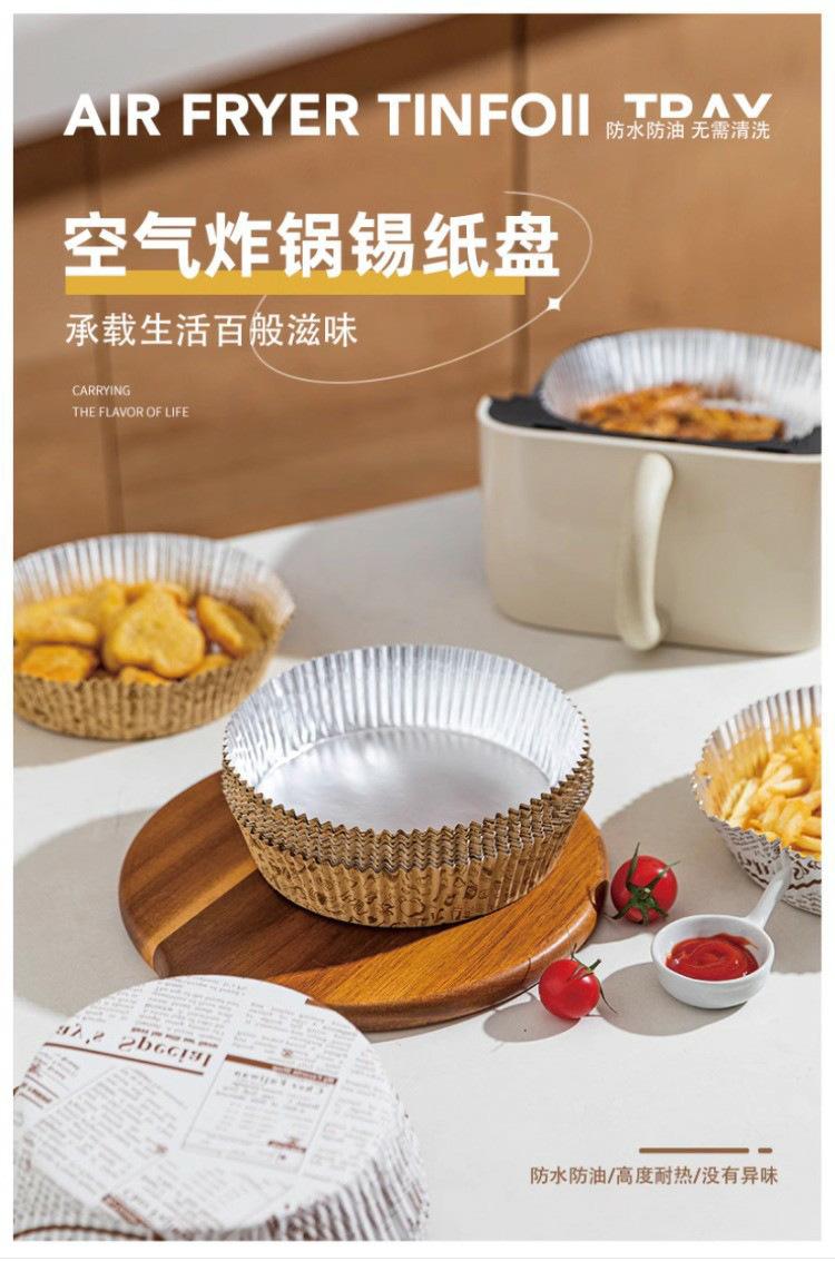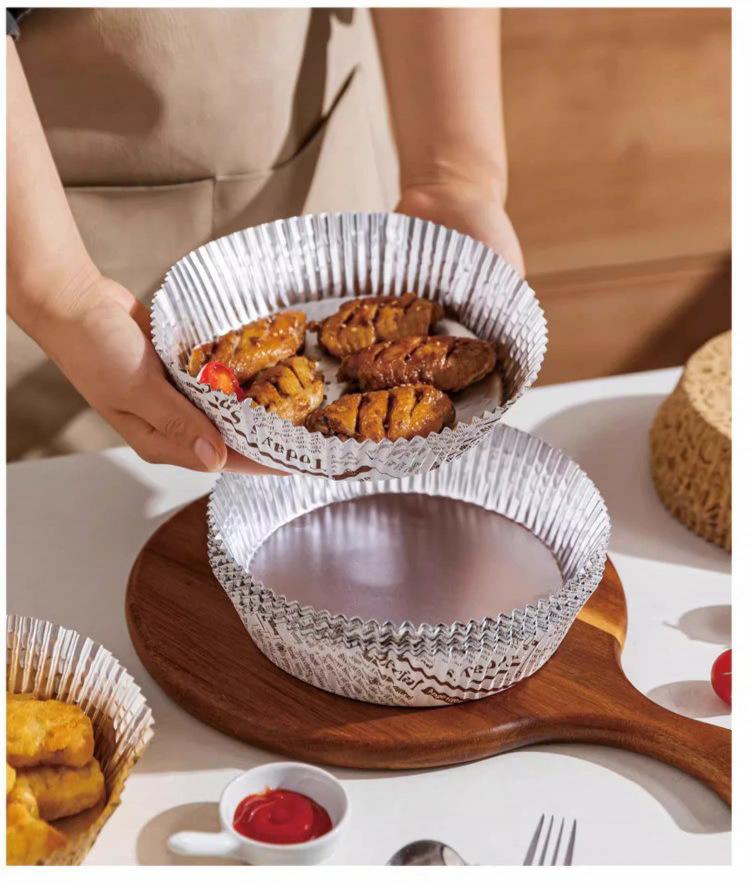 Bandeja para hornear de papel de aluminio engrosado para freidora de aire, bandeja para hornear de papel de aluminio, bandeja para horno de papel de estaño, recipiente de papel de estaño desechable para el hogar, venta al por mayor
