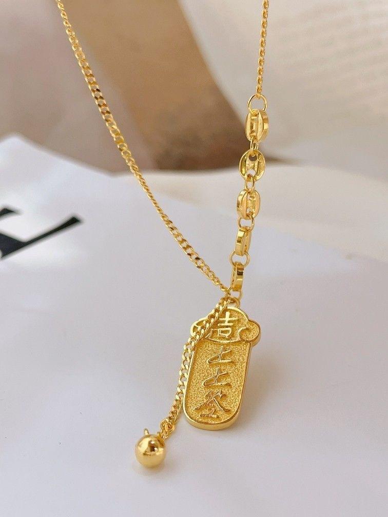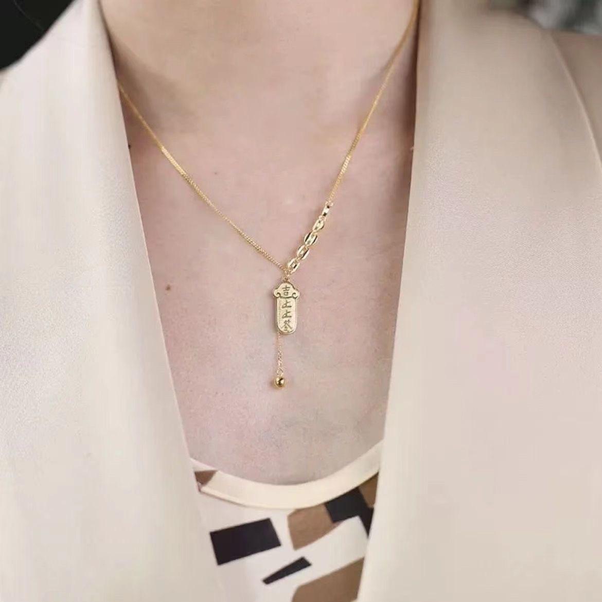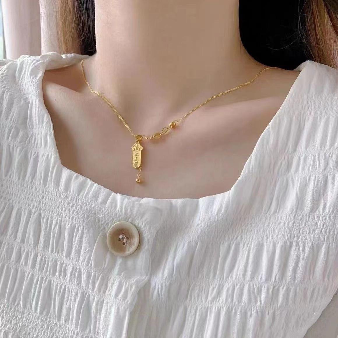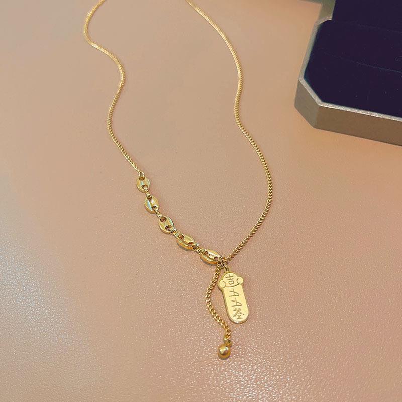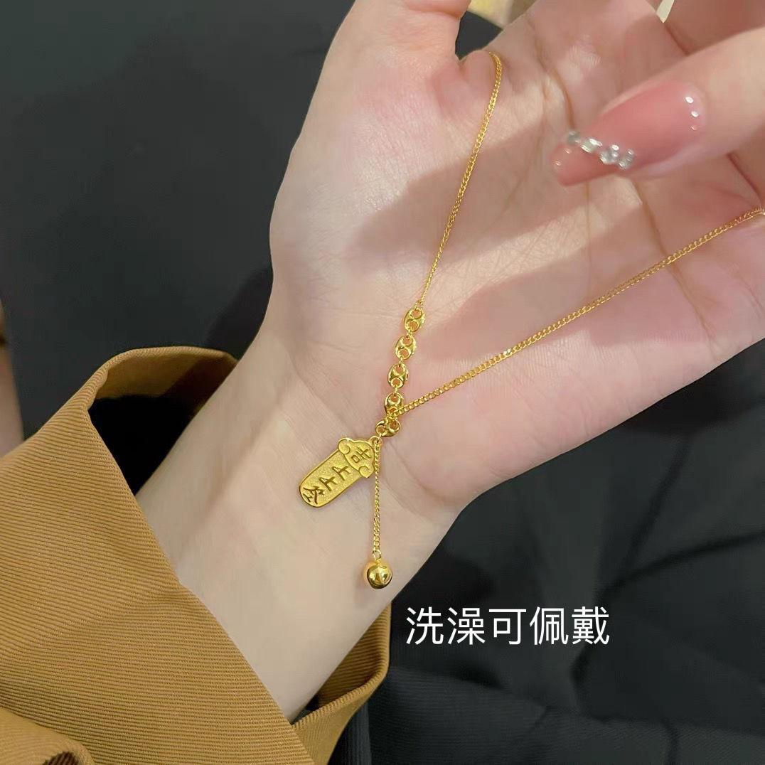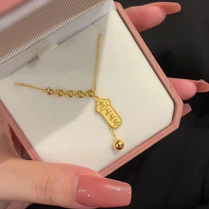 Collar de lujo ligero de alta gama con preservación del color en acero de titanio para mujer, estilo popular, con lingotes de oro, elegante colgante de moda, cadena de clavícula.