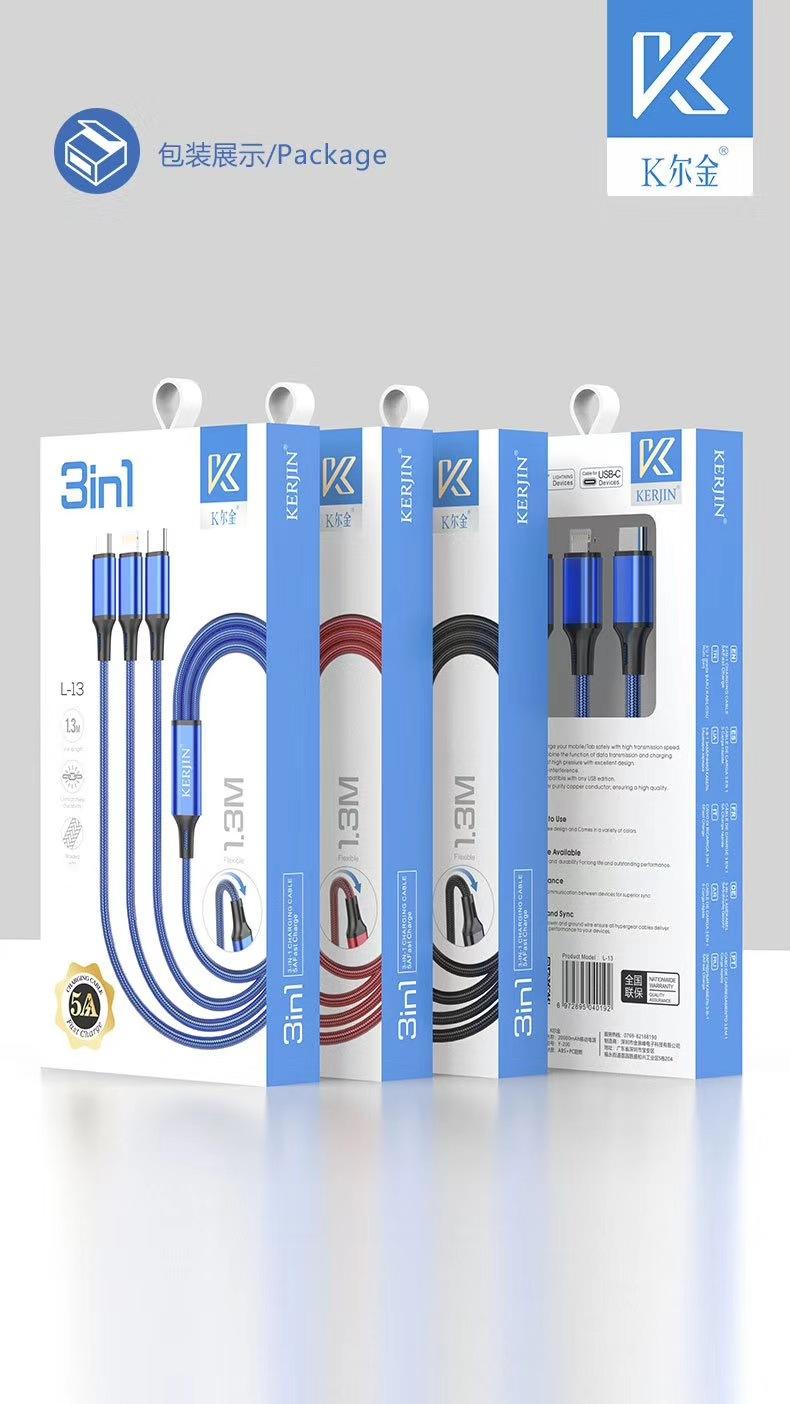 L-13 1.3m 5A cable de datos trenzado de calidad uno a tres