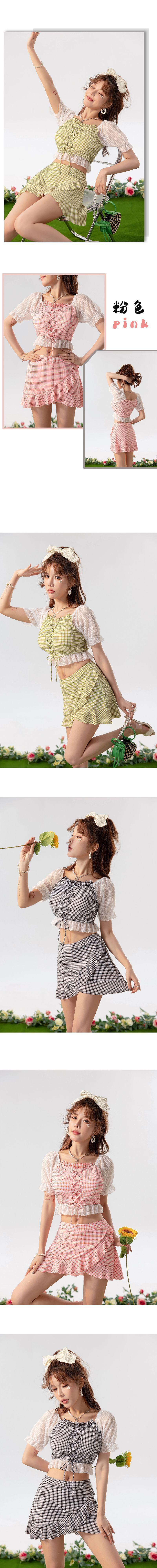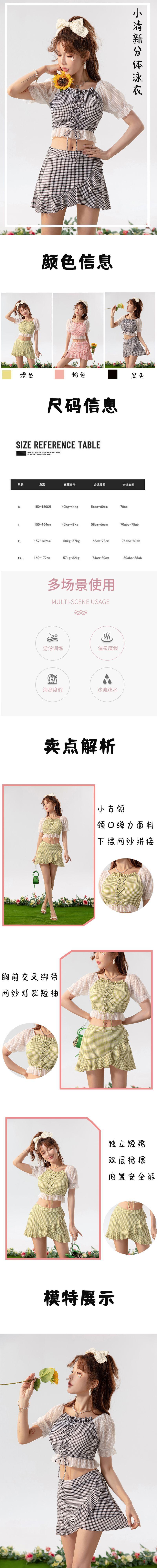 Nuevo traje de baño de moda para mujer, de malla a cuadros dividida, pequeño, fresco, conservador, sexy, de aguas termales, al por mayor, para mujer, natación