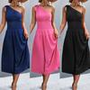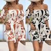 Vestido suelto con cordones y cuello con hombros descubiertos de verano para mujer de la estación independiente "Deseo Amazon Explosions" de 2022.