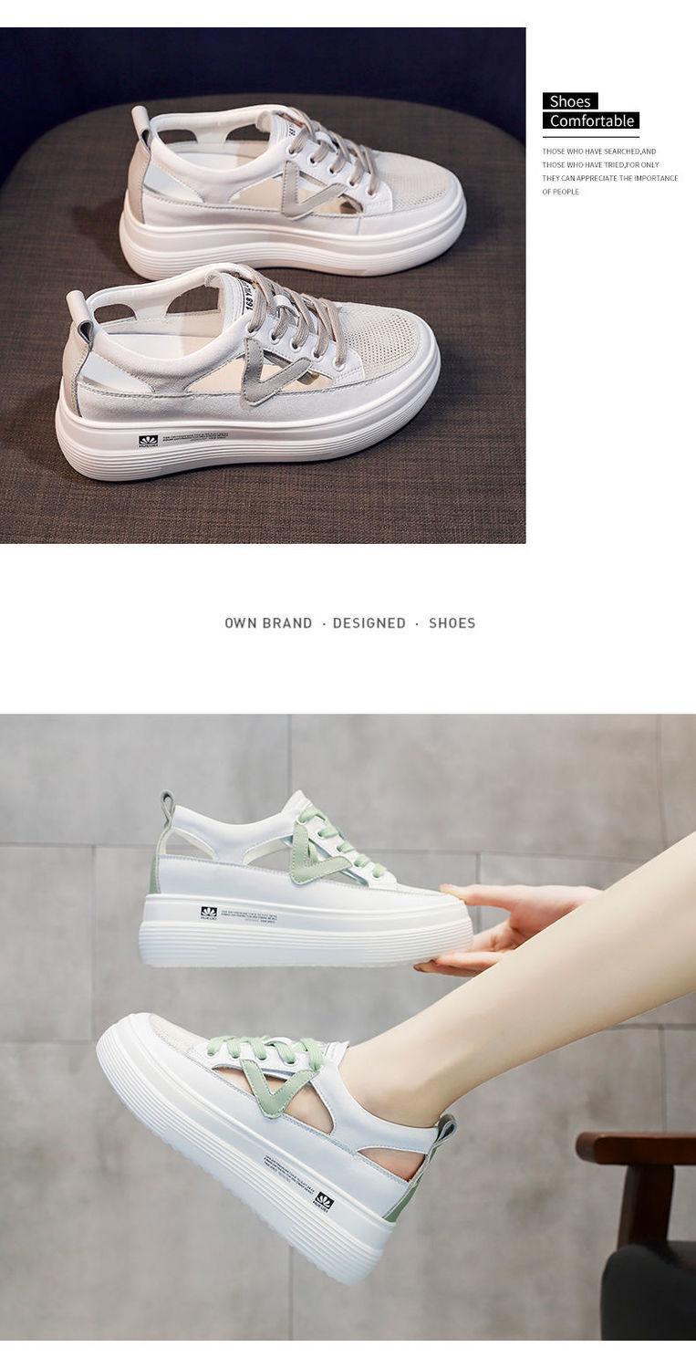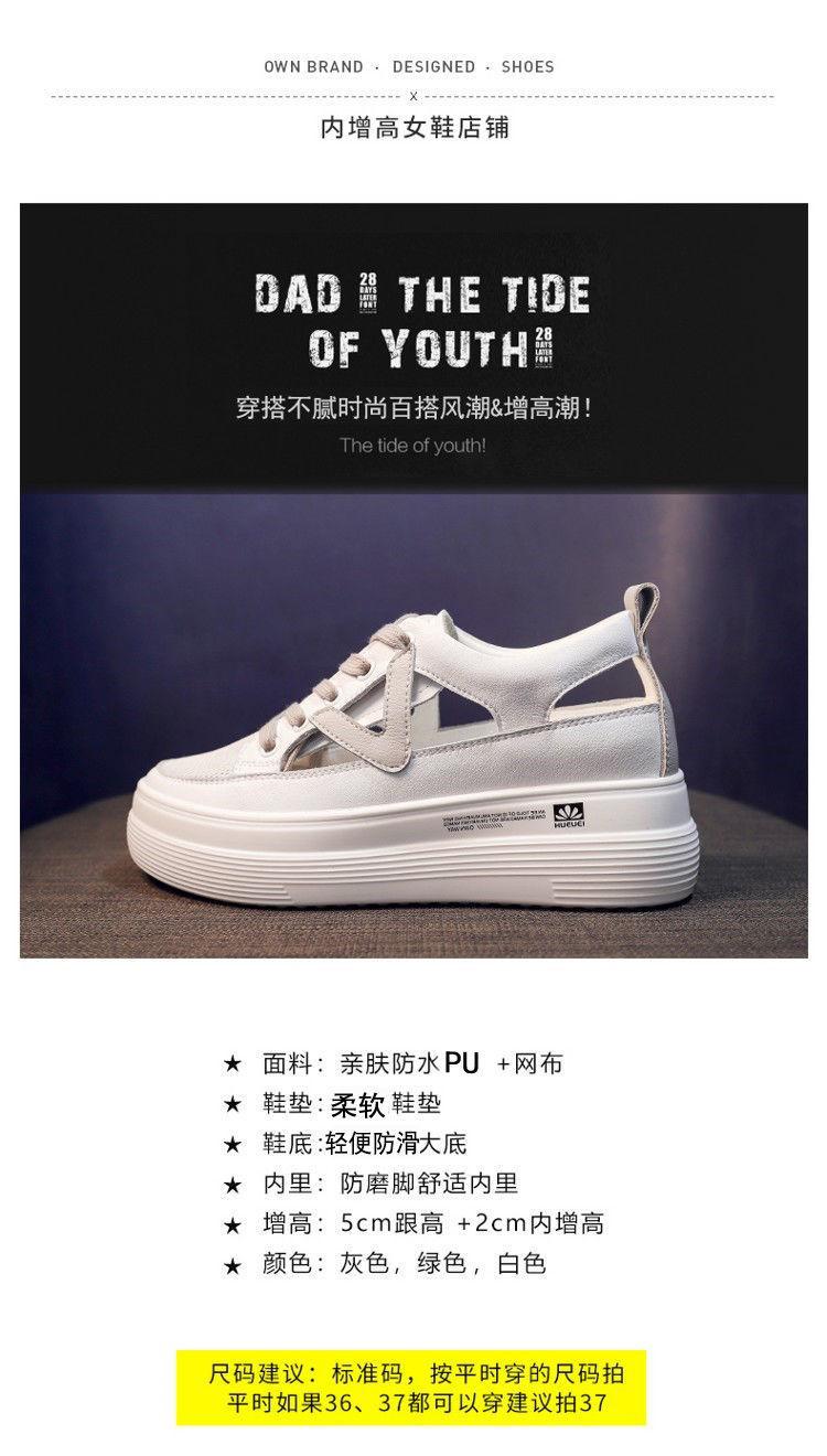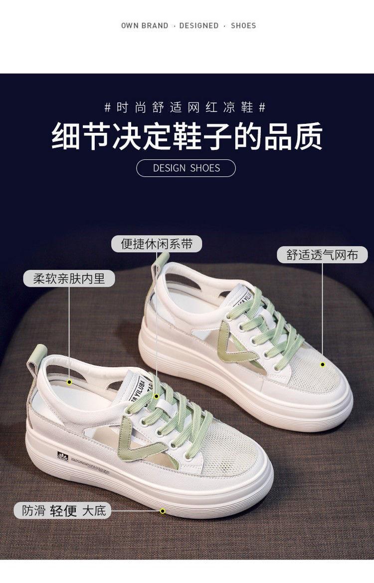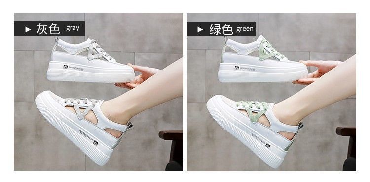 Zapatos blancos de verano 2024 para mujer, transpirables, de suela gruesa, de malla hueca, finos y combinables.