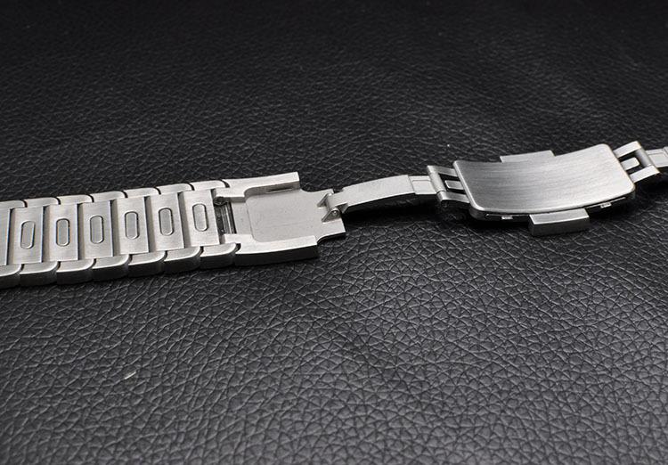 Notas de instalación:.Banda de acero con botón, primero romper para ajustar la longitud, recuerde que esta instalación debe ser en el caso de romper primero, primero deslice un extremo en el reloj y luego deslice el otro lado del reloj, y luego empalme. Si no se instala de esta manera, la hebilla se deformará en más del 90% de los casos. La deformación de la hebilla es toda provocada por el hombre. Las de acero inoxidable se tuercen. No necesito decir más, es un problema de instalación.
