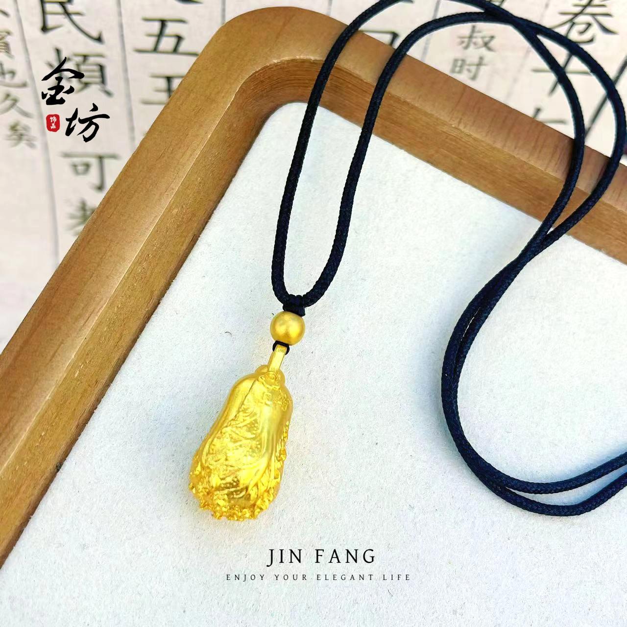 Gold-plated Chinese Cabbage Pendant, Gold Plated Lucky Chinese Cabbage Pendant Black Rope, Gold Plated Chinese...