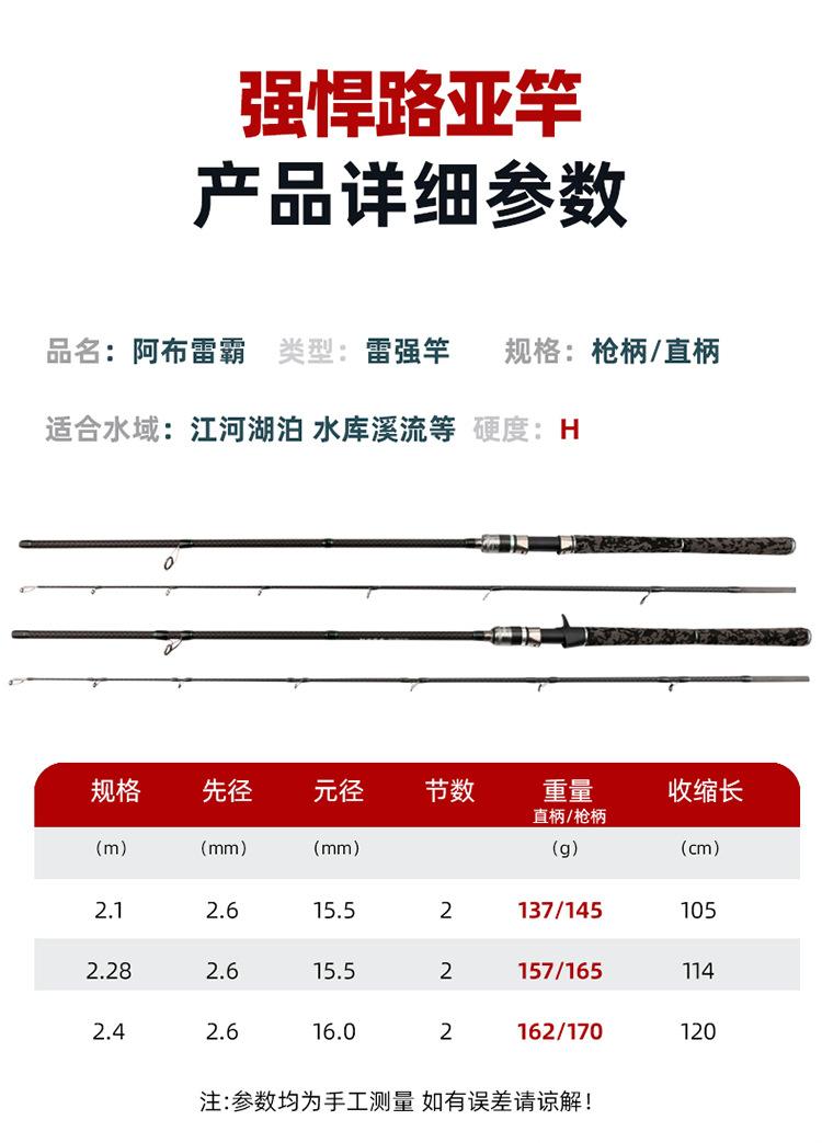 2. Título: Abrey Ba Lei caña fuerte nueva súper dura tono H venta al por mayor equipo de pesca mango recto mango de pistola cosa grande carbono negro caña fuerte Lei