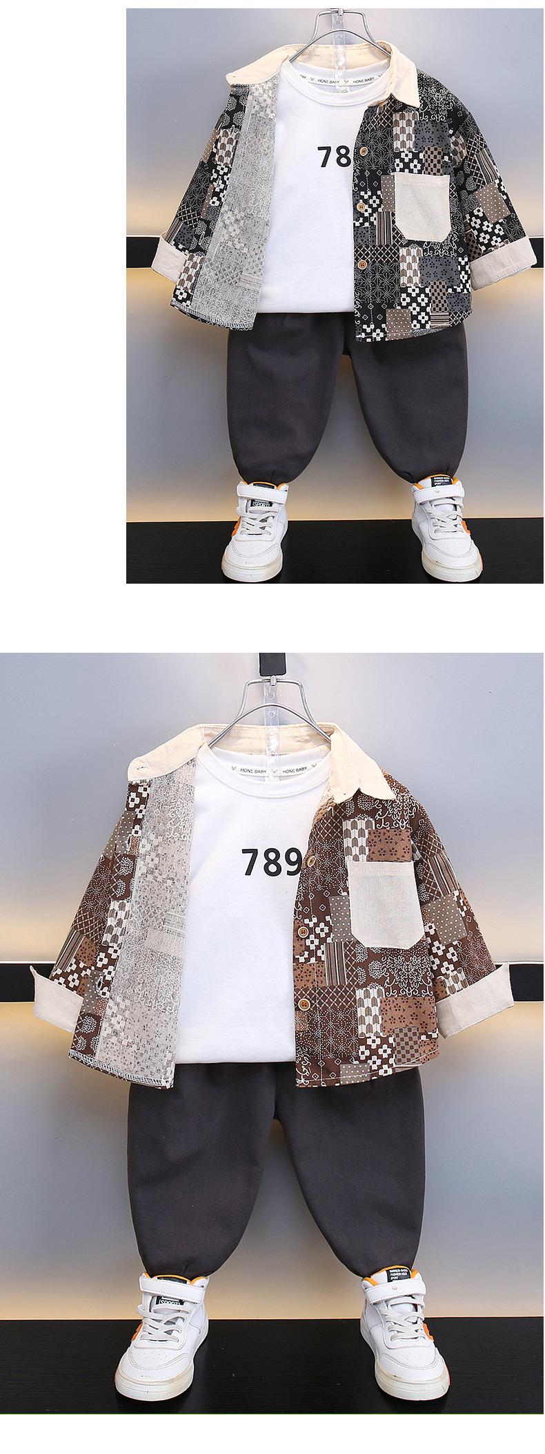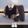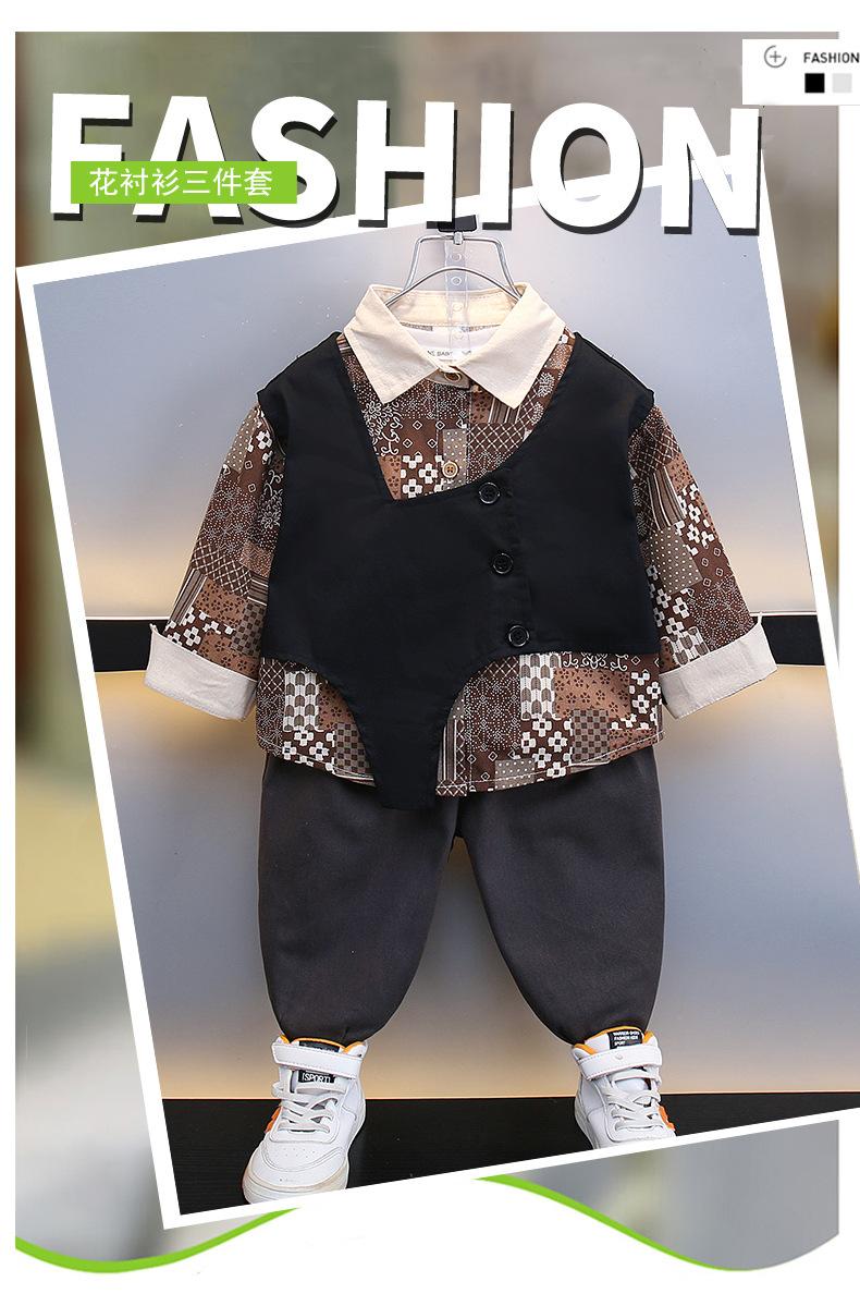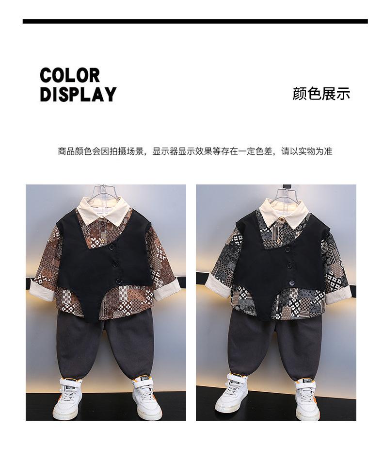 Traje de otoño para niños, estilo occidental, camisa para niños, 2024, nueva y atractiva ropa de primavera y otoño para bebés, chaleco para niños, conjunto de tres piezas