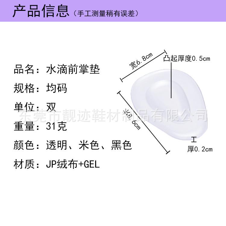 Almohadilla para el antepié con forma de gota de agua, tamaño medio, para mujer, gruesa, antideslizante, transparente, suave, de gel