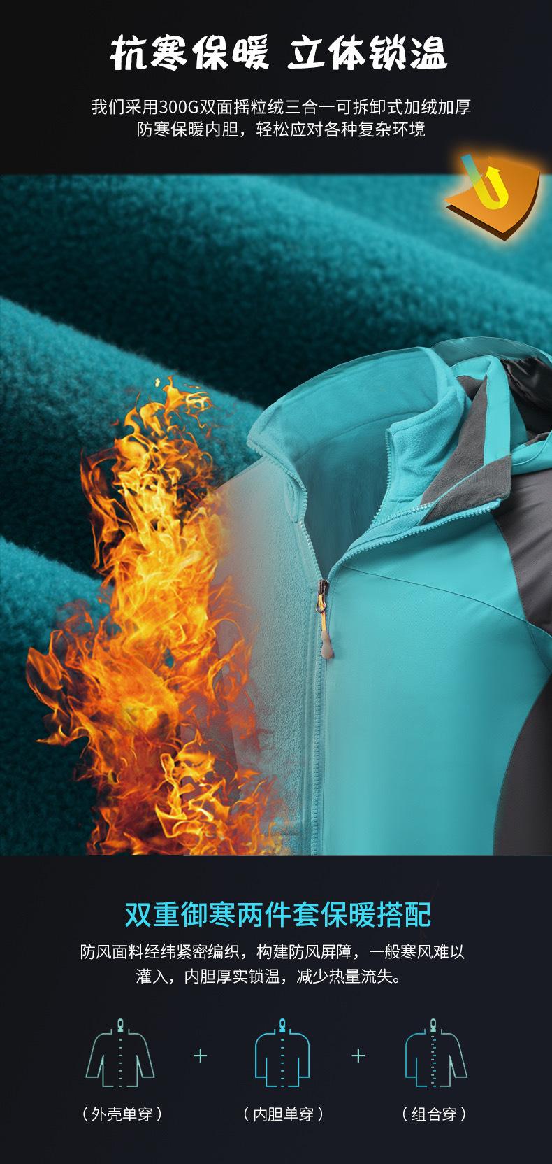 Chamarra de Trabajo Personalizada Tres en Uno para Montañismo al Aire Libre con Forro Polar, Impermeable y Cortavientos, Uniforme Grupal Corporativo con Estampado