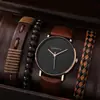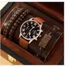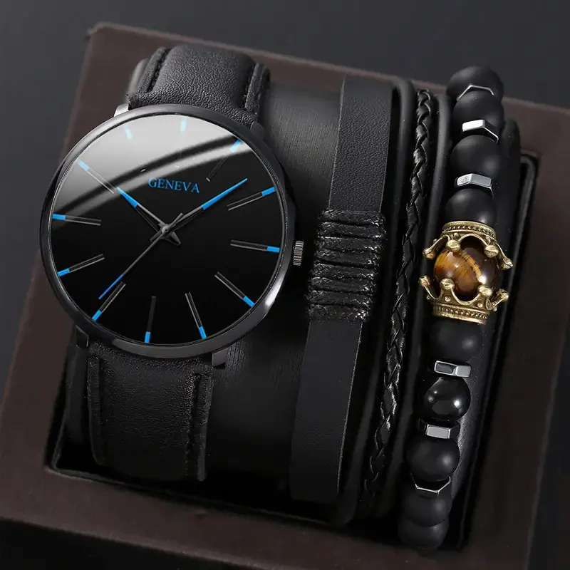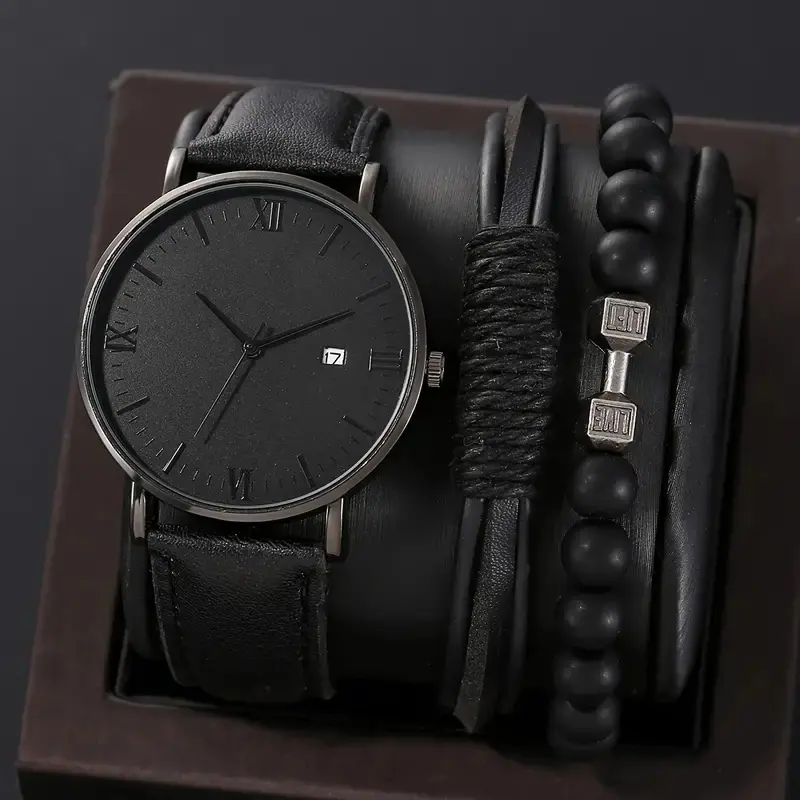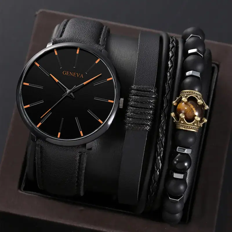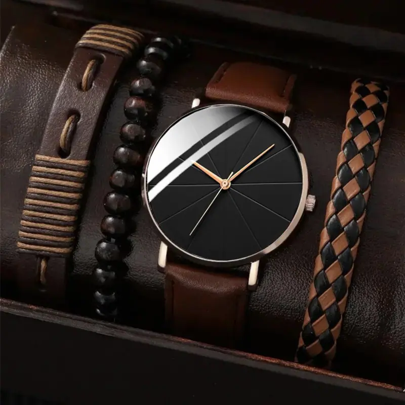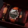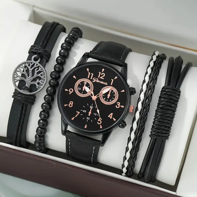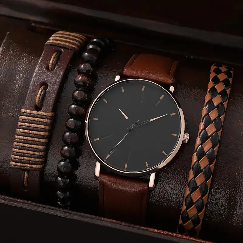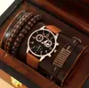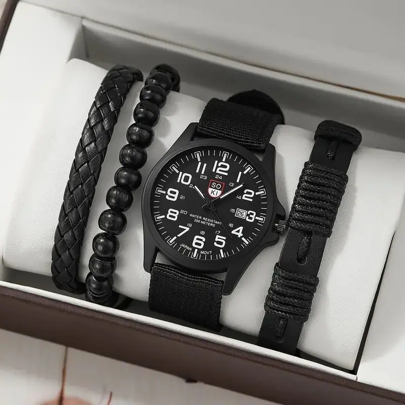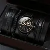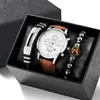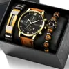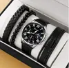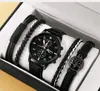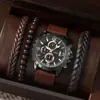 Juego de reloj nuevo para hombre de 4 piezas/set, reloj de cuarzo de tres ojos falsos genial, pulsera tejida con cuentas que combina con todo