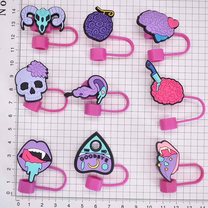 Tapa para popote antipolvo creativa transfronteriza para fiesta de Halloween, cubierta antipolvo para popote de pegamento suave de PVC, Amazon en stock al por mayor