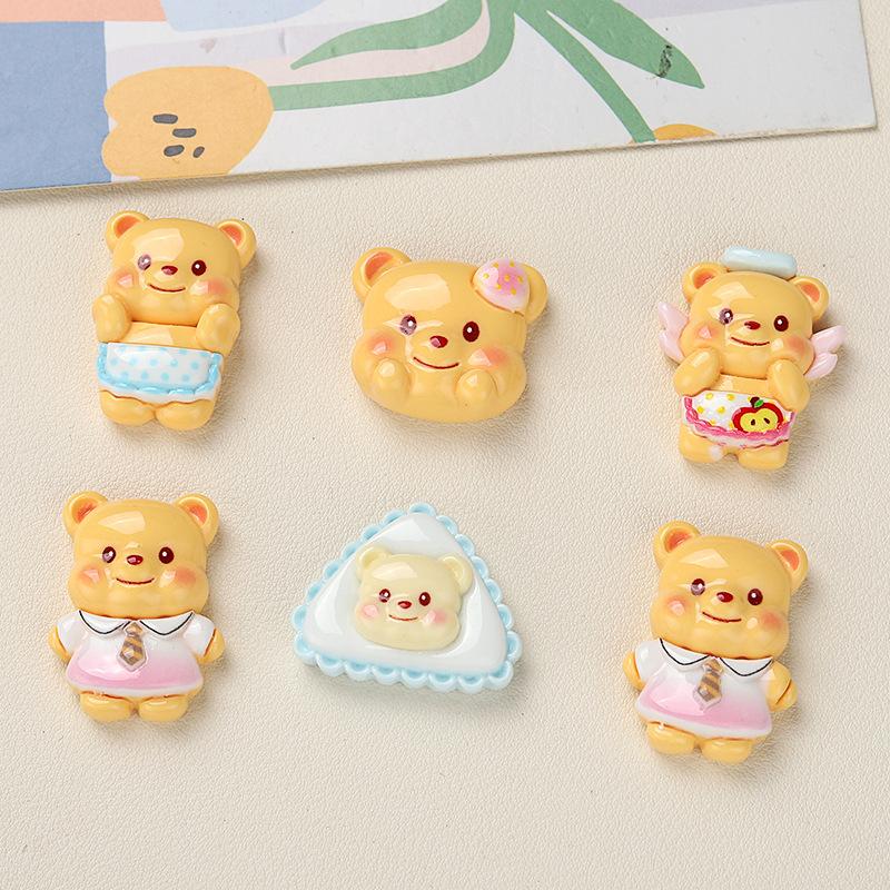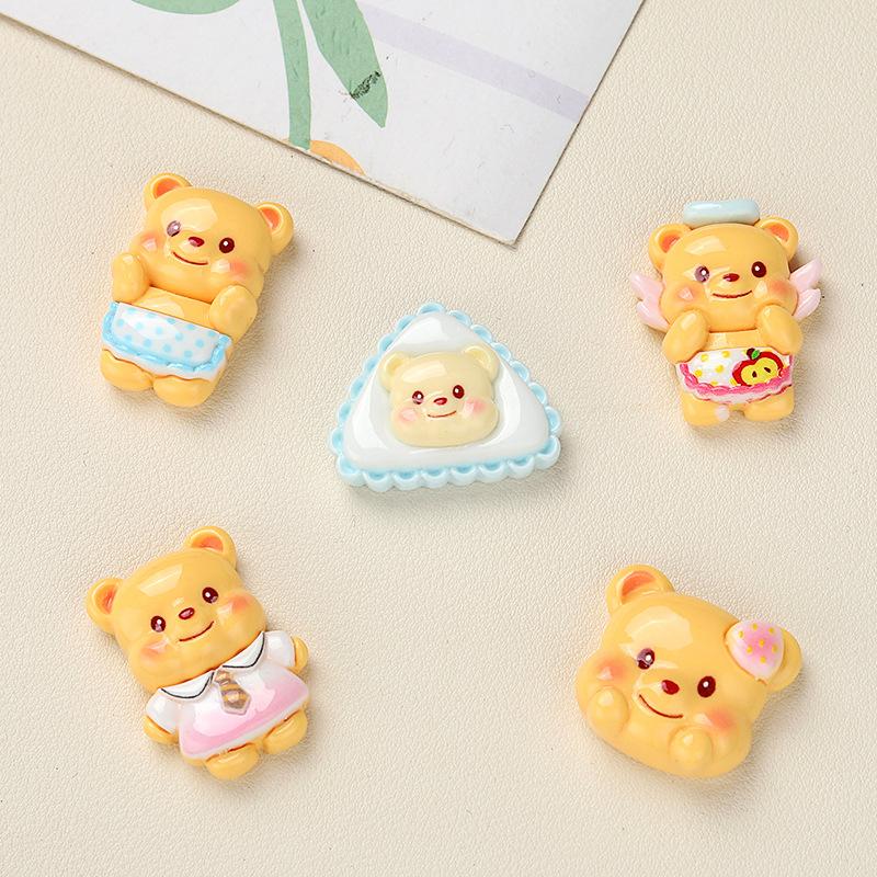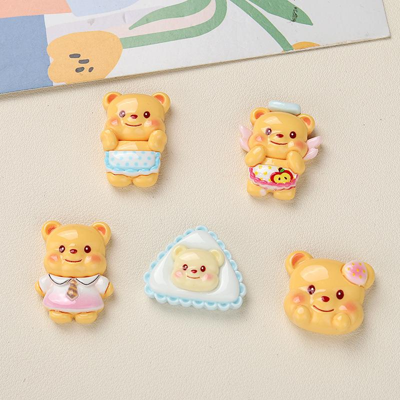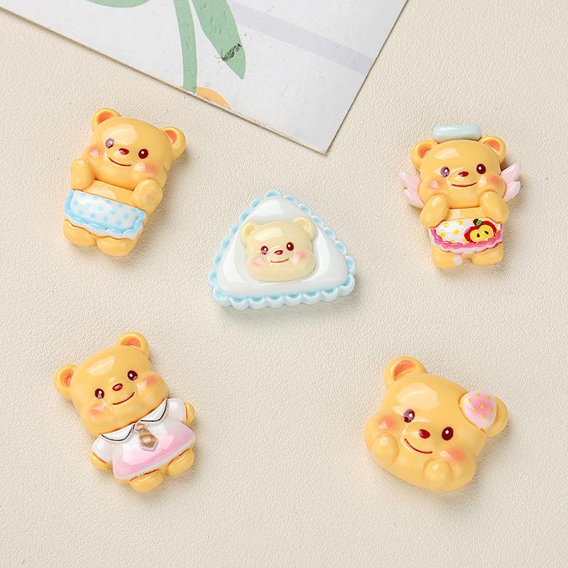 Accesorios de resina de dibujos animados para hacer tú mismo, accesorios en la tarjeta, mantequilla, oso, crema, pegamento, se puede perforar, pinza para el cabello, funda de teléfono móvil, hebilla de zapato