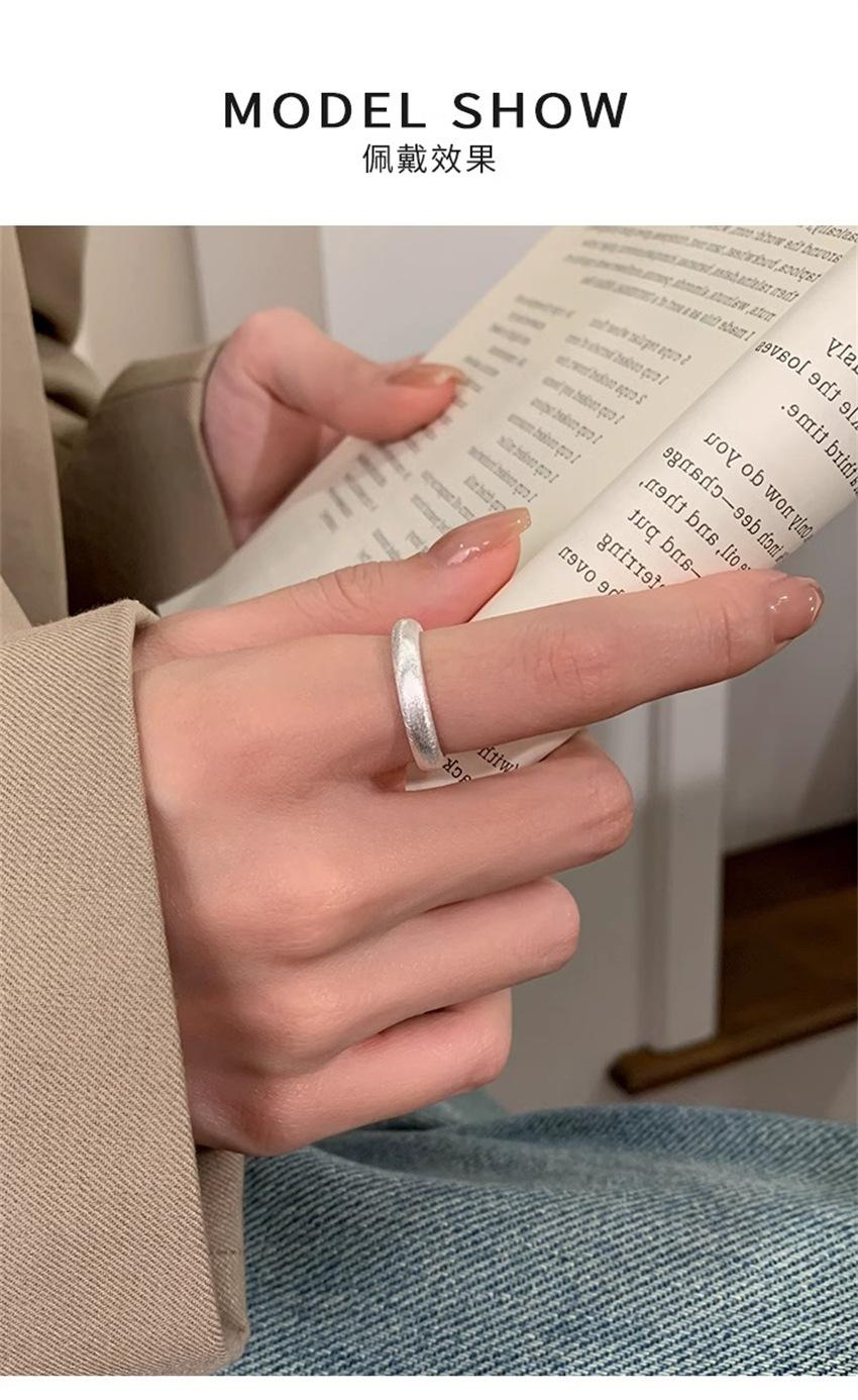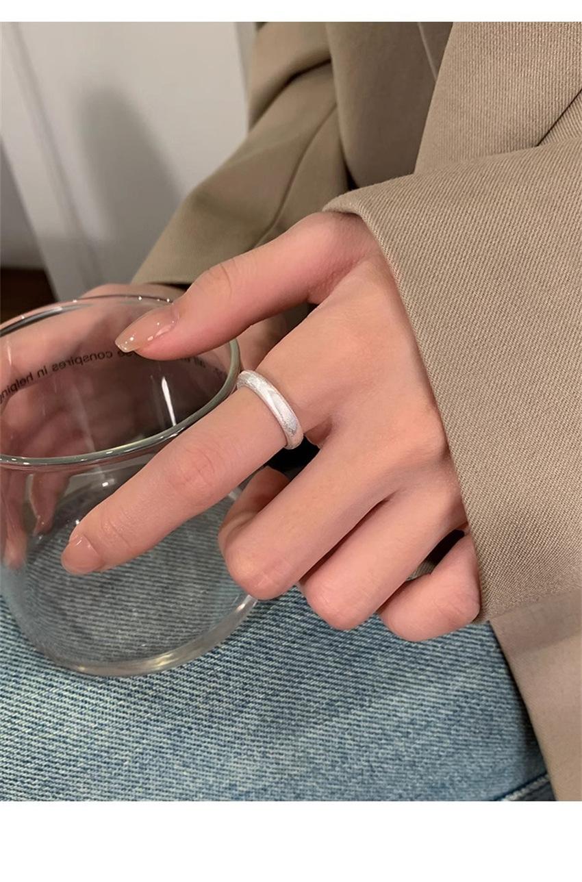 Anillo de plata de ley S925 de lujo ligero con acabado cepillado y esmerilado para mujer, estilo sencillo, diseño de nicho abierto, anillo elegante y sencillo al por mayor.