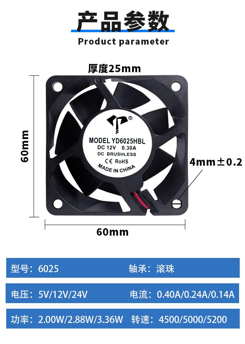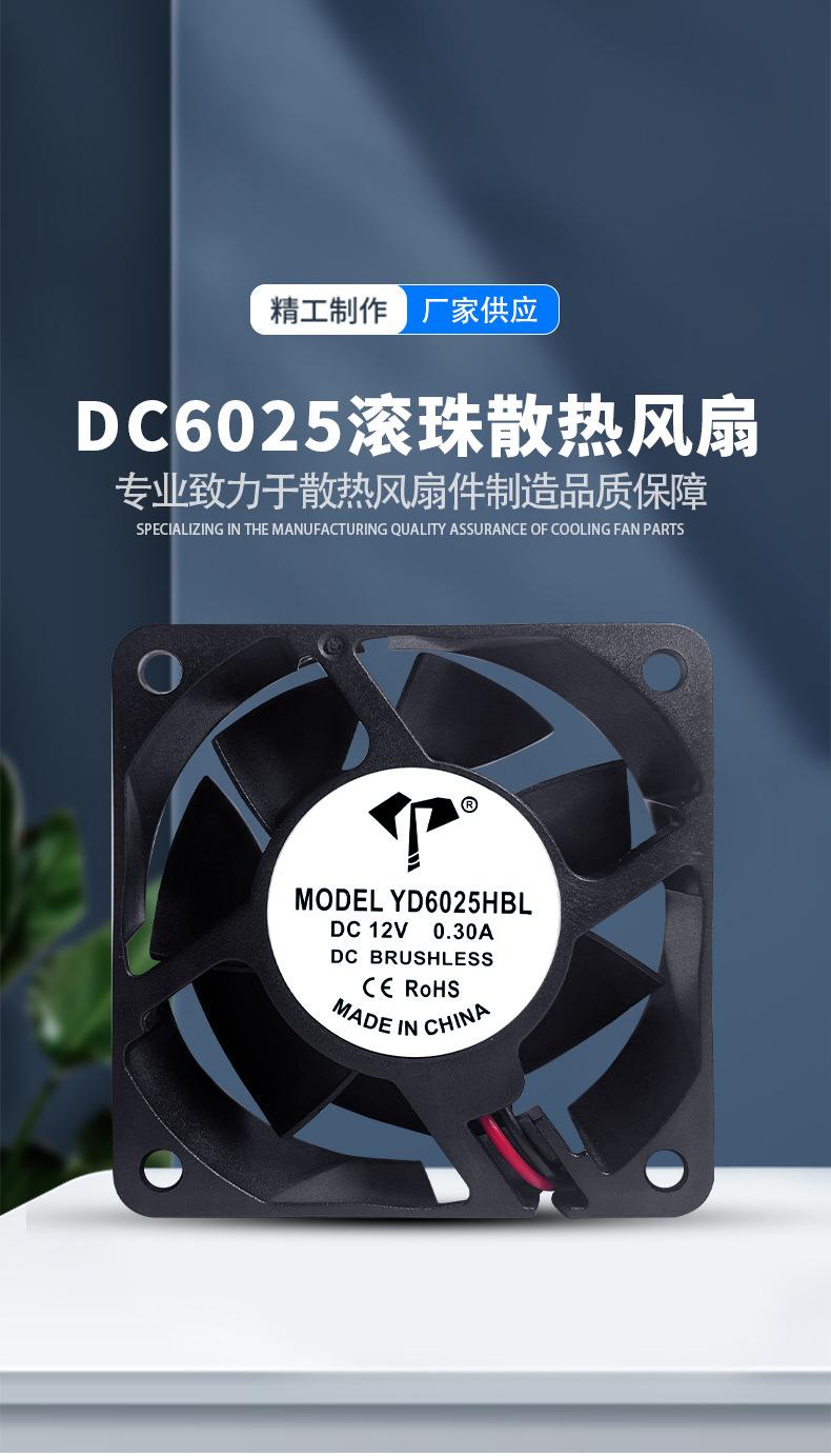 Ventilador de CC 6025 directo de fábrica, bola de dos cables, inversor de 5 V, 12 V y 24 V, equipo mecánico, ventilador de refrigeración de 6 cm