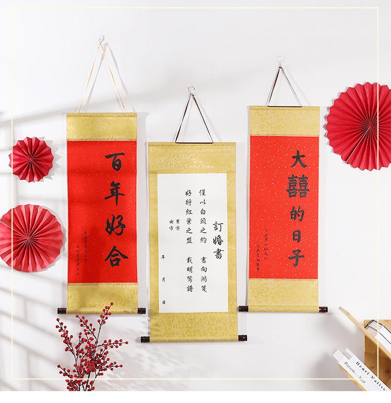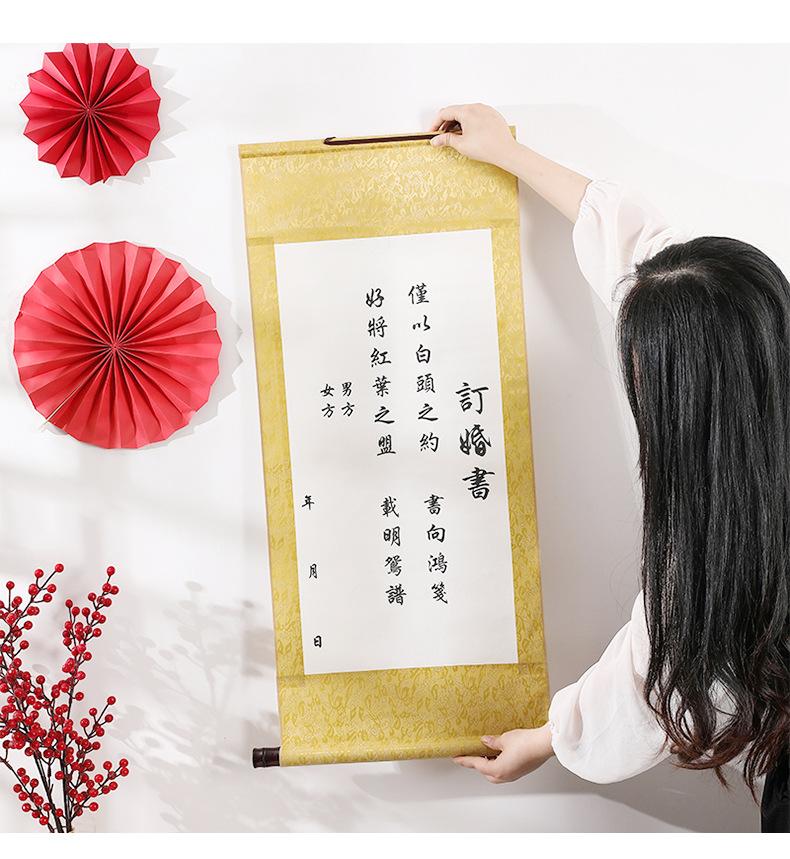 Mi familia tiene un libro de compromiso feliz Ceremonia de boda de estilo retro chino Regalo de un año Pergamino colgante para enviar el próximo libro de citas Suministros para bodas