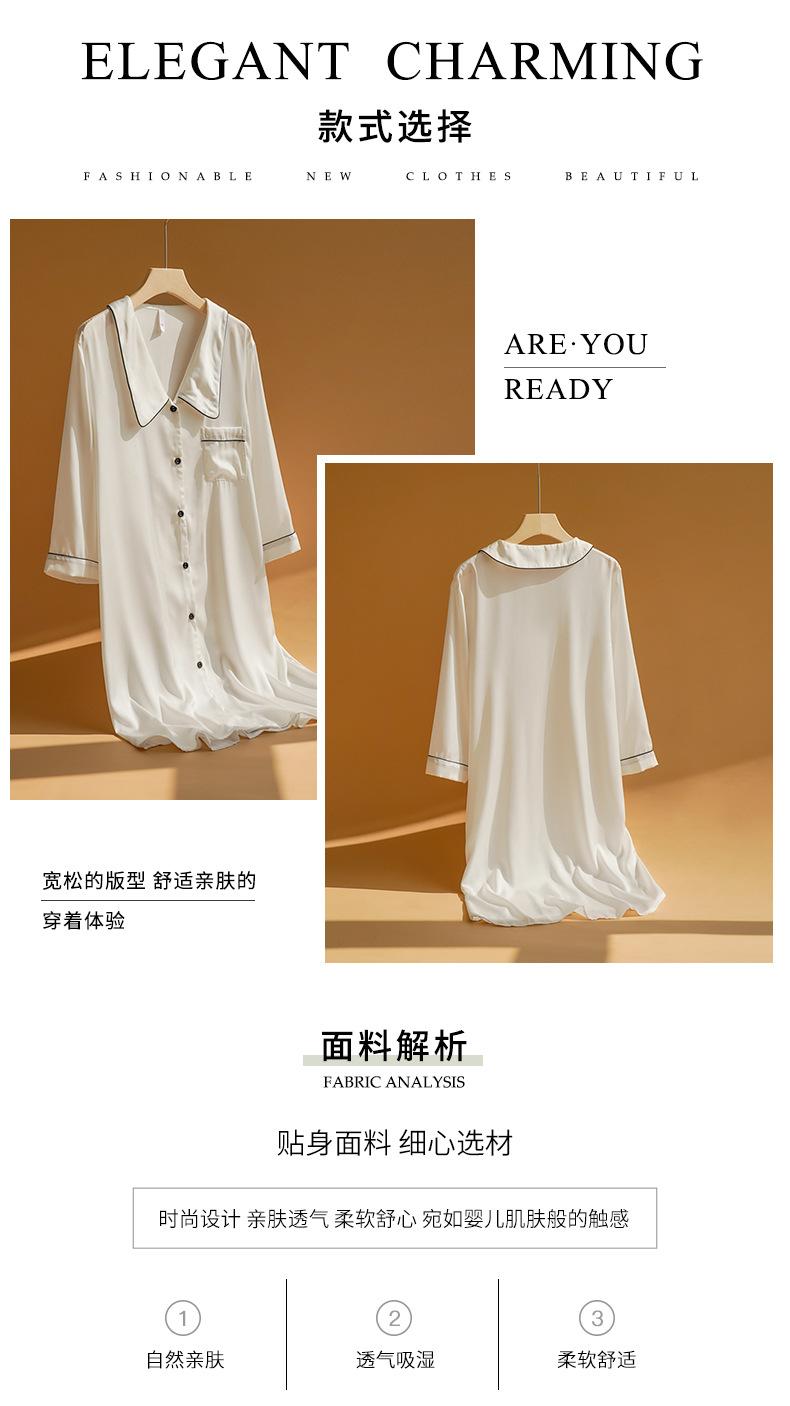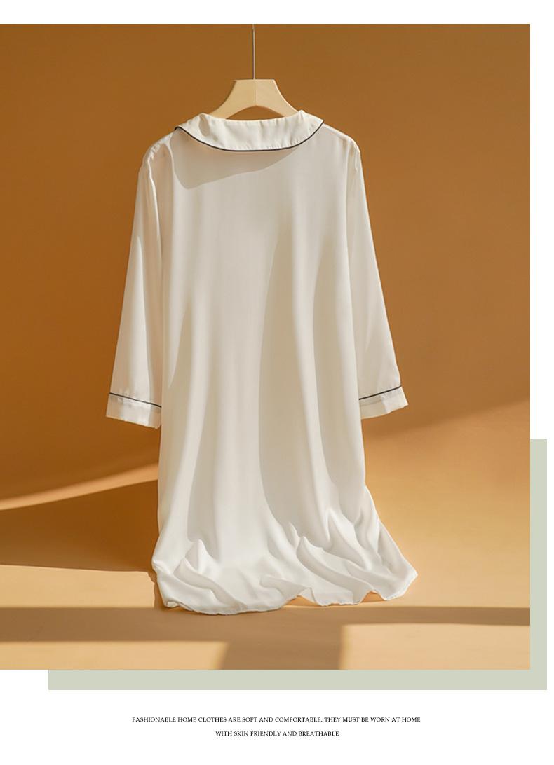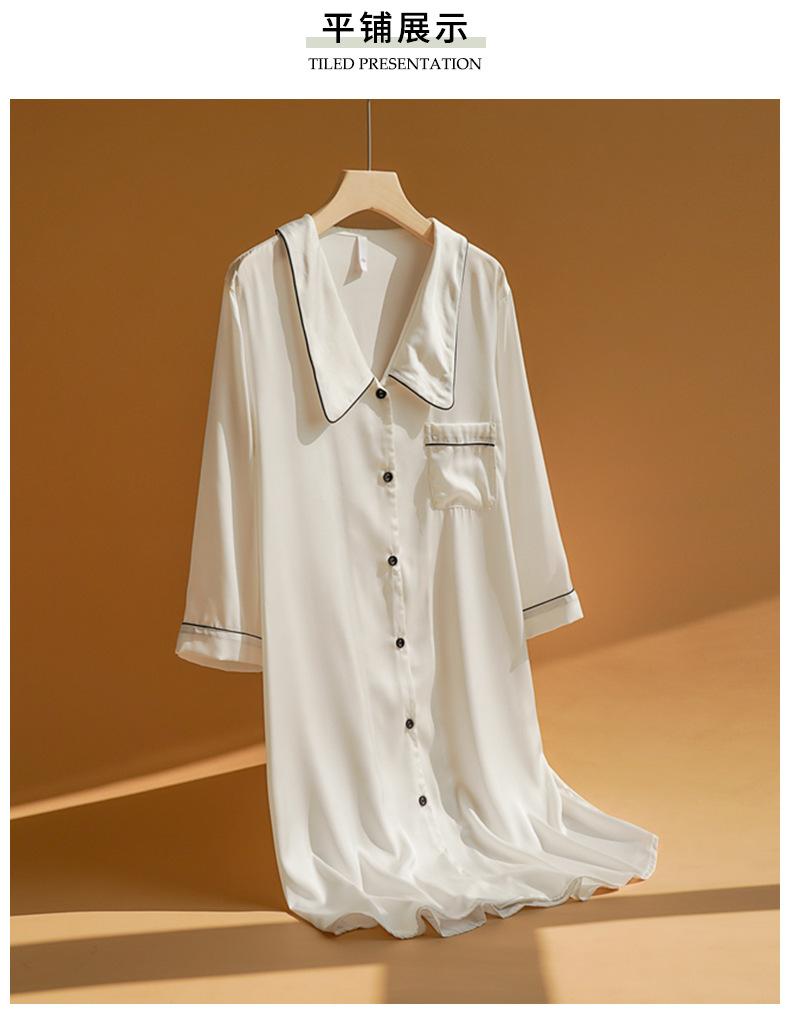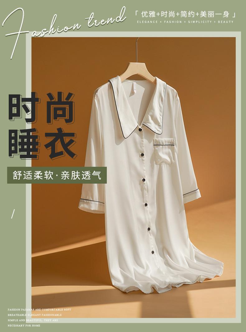 Camisón de celebridad de Internet para mujer, camisa de manga larga de seda fina de verano, pijama de mujer, cuello de muñeca, ropa de hogar de seda sintética