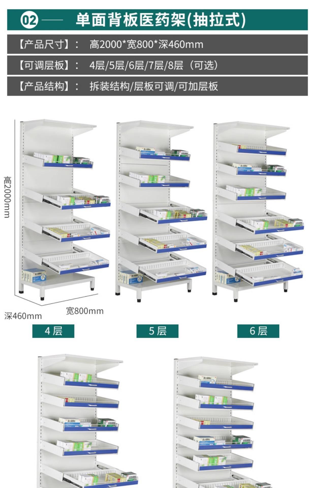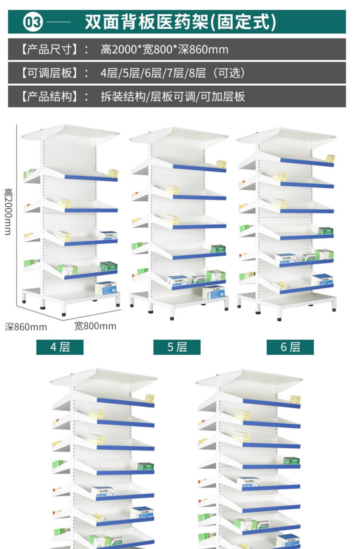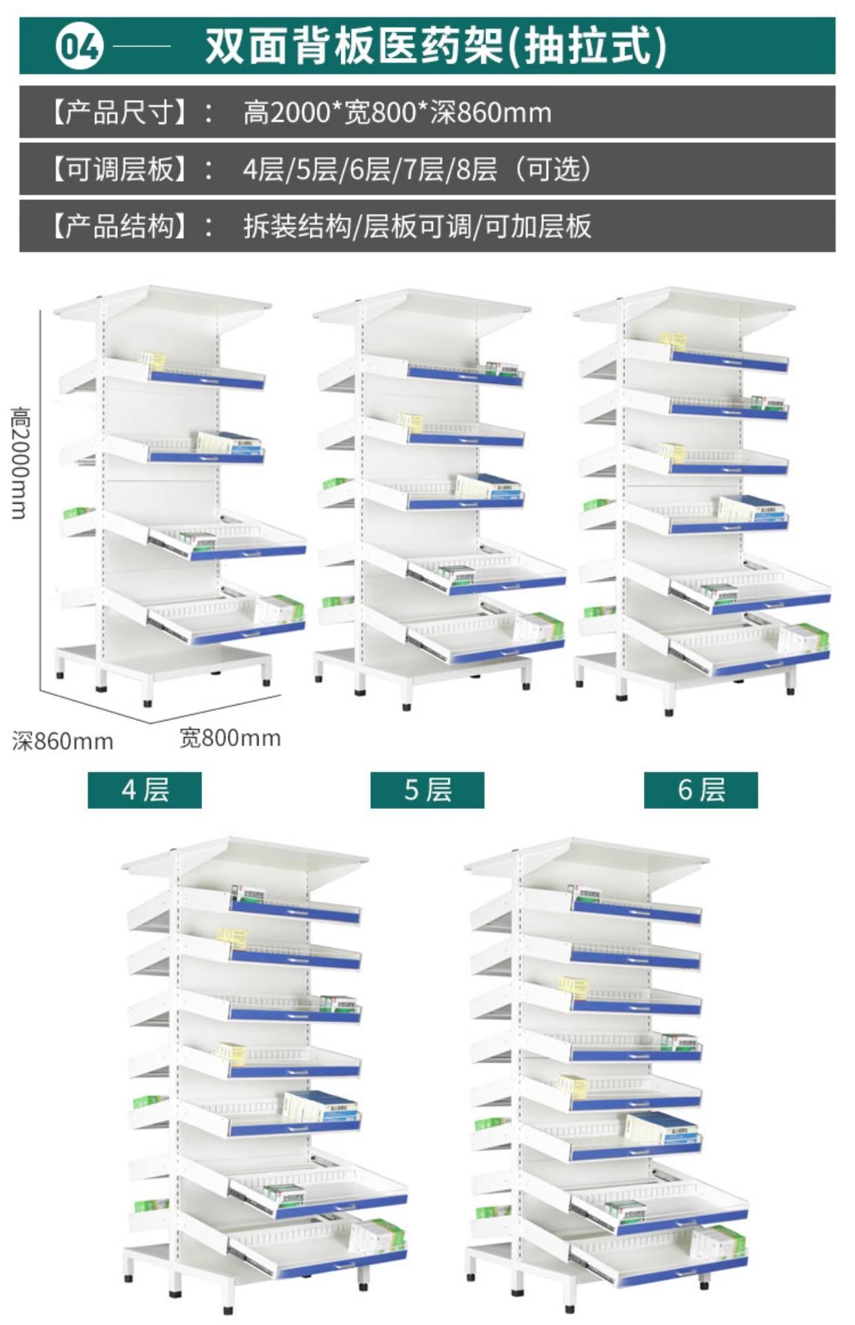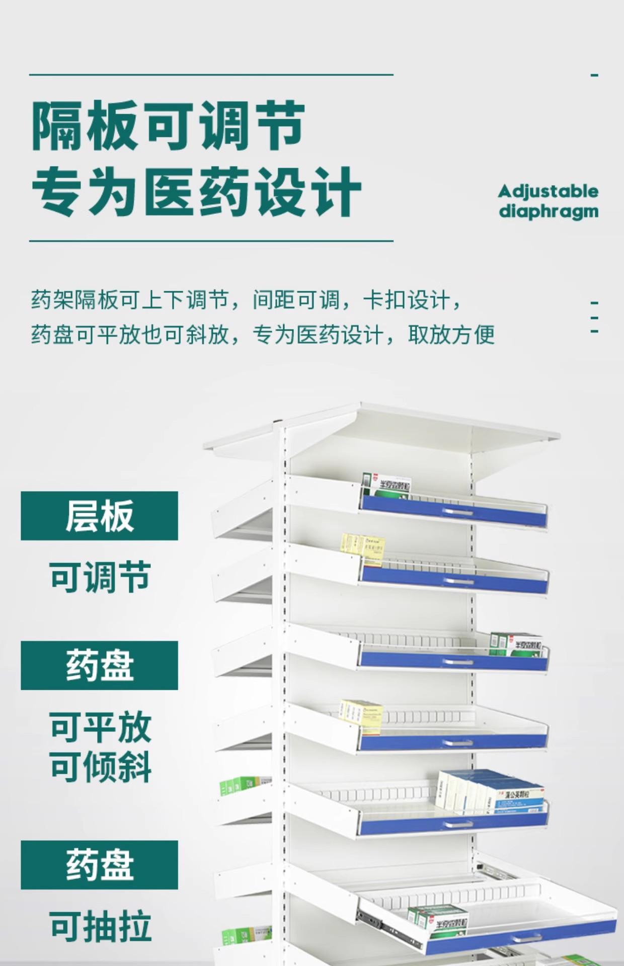 Farmacia Estante para Medicamentos Extraíble de una Cara y de Doble Cara Hospital Estante para Medicina Occidental Estante para Medicamentos de Clínica Estante de Exhibición Comercial para Farmacia Mesa de Desecho