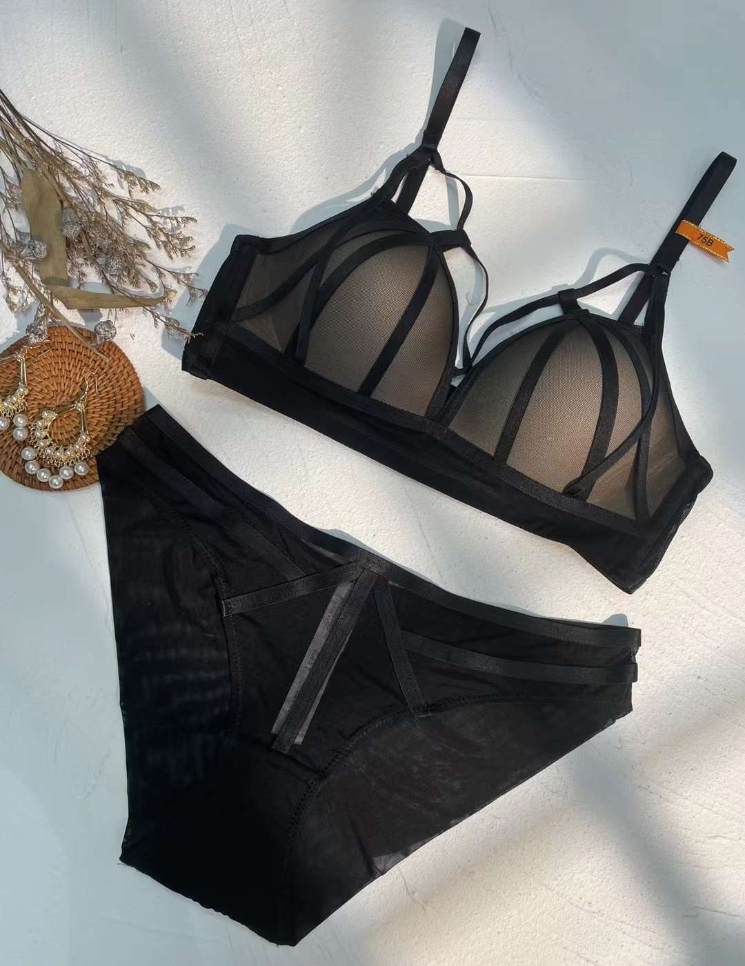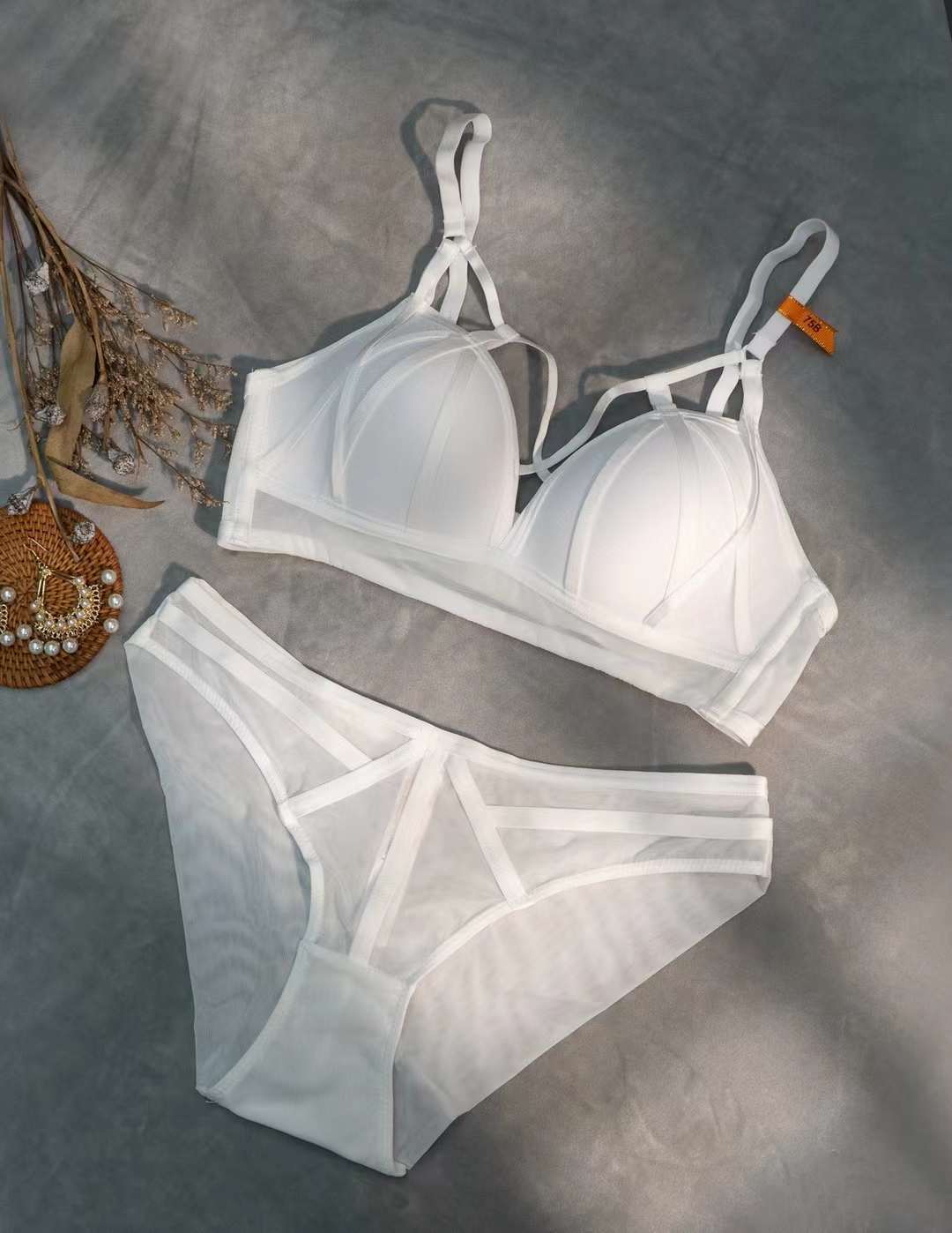 Compra Nueva ropa interior sexy de estilo francés para mujer, sujetador inalámbrico con tiras cruzadas, sujetador push up pequeño y fino con pecho grande. al por mayor en Joom.pro