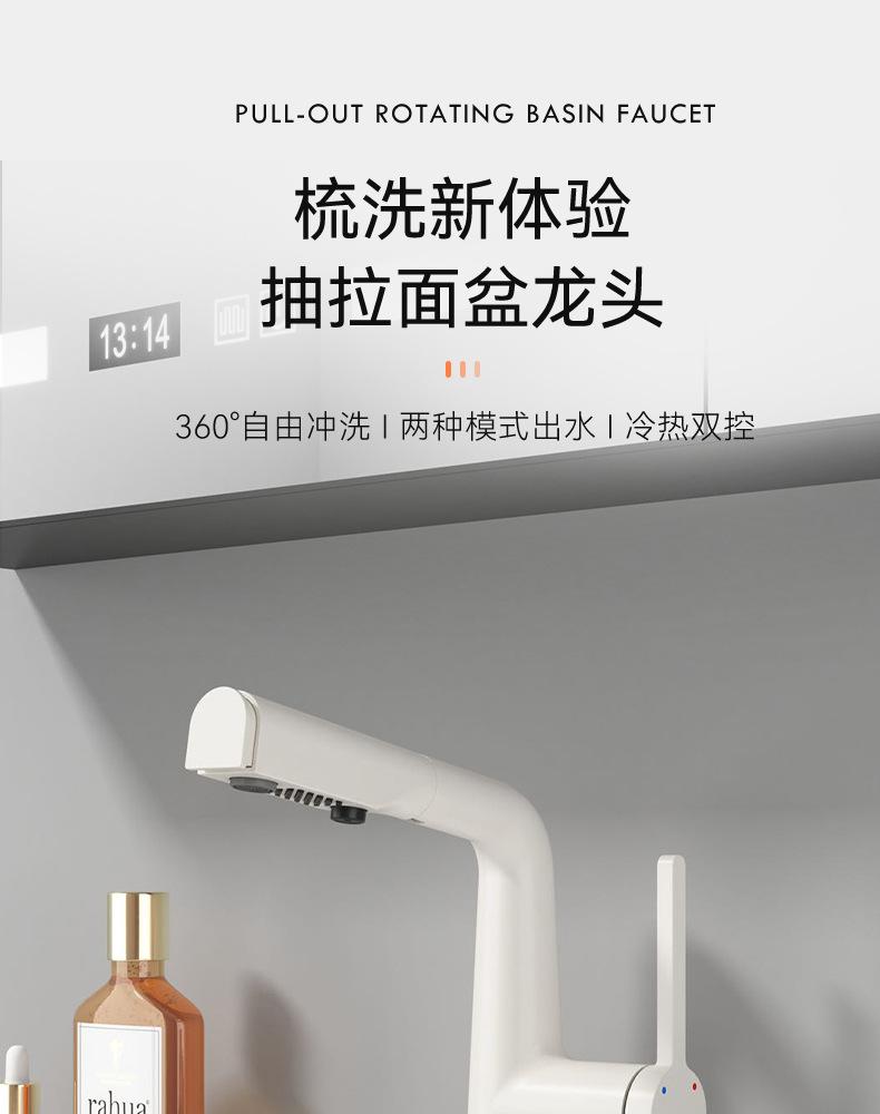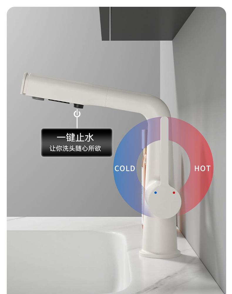 Crema viento hogar baño un botón parada de agua tirar grifo lavabo baño lavabo grifo frío y caliente lavabo