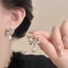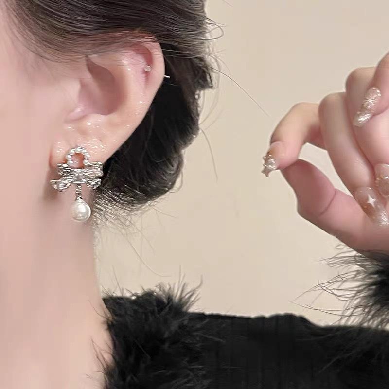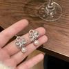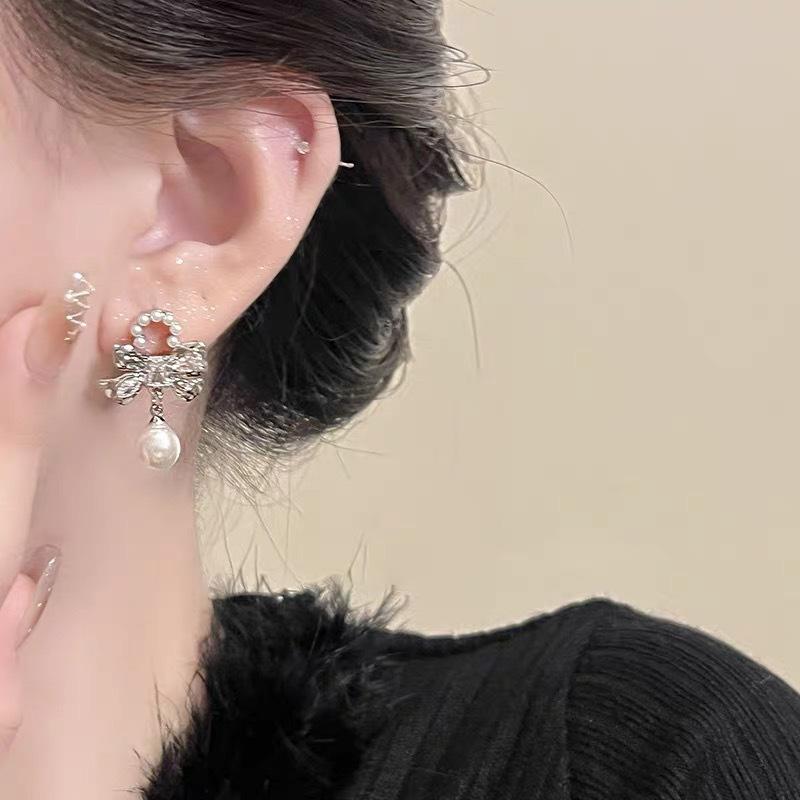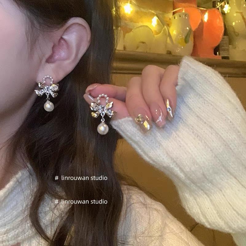 Pendientes de perlas con lazo para mujer 2024, nuevos y únicos, de otoño e invierno, de alta gama, con diseño vintage de nicho.