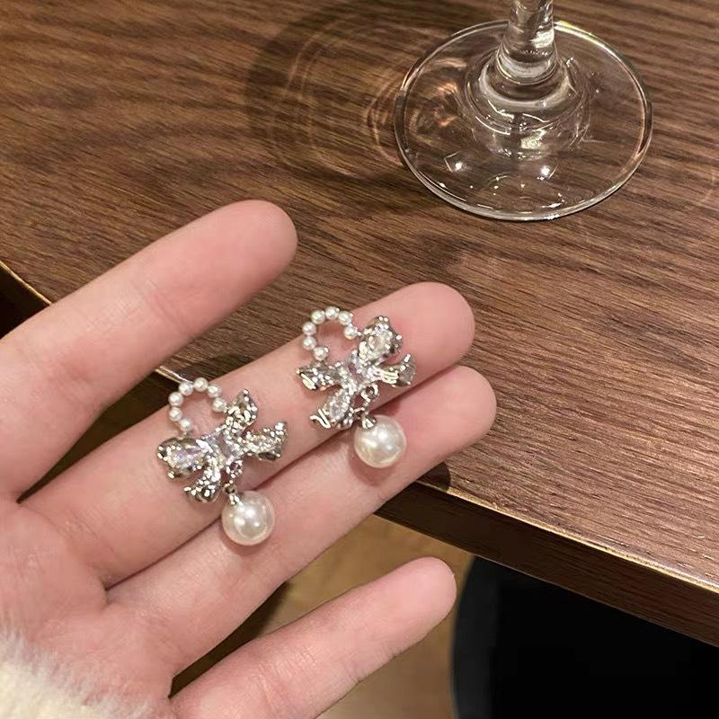 Compra Pendientes de perlas con lazo para mujer 2024, nuevos y únicos, de otoño e invierno, de alta gama, con diseño vintage de nicho. al por mayor en Joom.pro